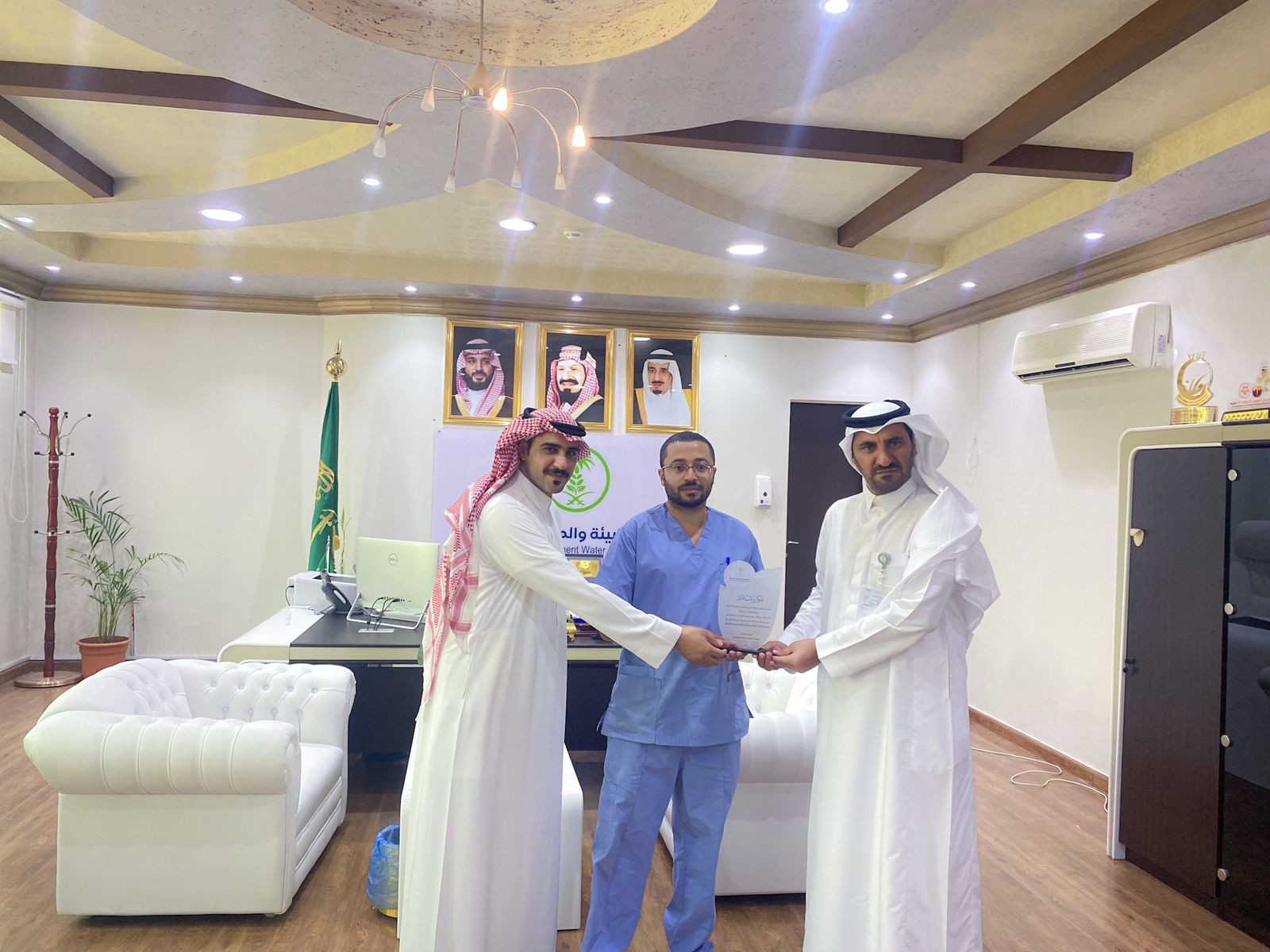 كرم سعادة مدير عام فرع وزارة البيئة والمياه والزراعة بمنطقة الباحة المهندس / فهد بن مفتاح الزهراني فريق العمل الذي باشر عملية انقاذ الذئب العربي والذي تعرض للأذى من قبل اشخاص مجهولين حيث باشرت الحالة جمعية رحمه للرفق بالحيوان وبدورهم قاموا بنقله الى مكتب وزارة البيئة والمياه والزراعة بمحافظة بلجرشي لتلقى الإسعافات الأولية والرعاية الصحية اللازمة واتباعاً للأنظمة والتعليمات فقد تم مخاطبة جهة الاختصاص بالمركز الوطني لتنمية الحياة الفطرية لاستلامه ومتابعة حالته الصحية لحين تحسنها وإعادة الى الطبيعة حيث مواطنه الاصلية وذلك ما تم من خلال المركز حيث تم استلامة وتوجهه لمركز الأمير سعود الفيصل لأبحاث الحياة الفطرية في الطائف لاستكمال العمليات الجراحية اللازمة له..