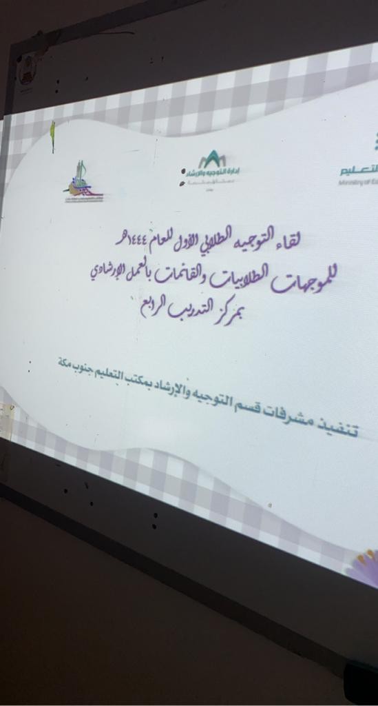 عقدت الإدارة العامة للتعليم بمنطقة مكة المكرمة ممثلةً بمكتب تعليم جنوب مكة – شعبة التوجيه والإرشاد – يومي الأربعاء والخميس الموافق 11 - 12/2/1444هـ، لقاء التوجيه الأول نفذهُ مشرفات قسم التوجيه الطلابي حنان وزان، ابتسام الوجيه بإشراف مديرة المكتب رحمة القحطاني.
