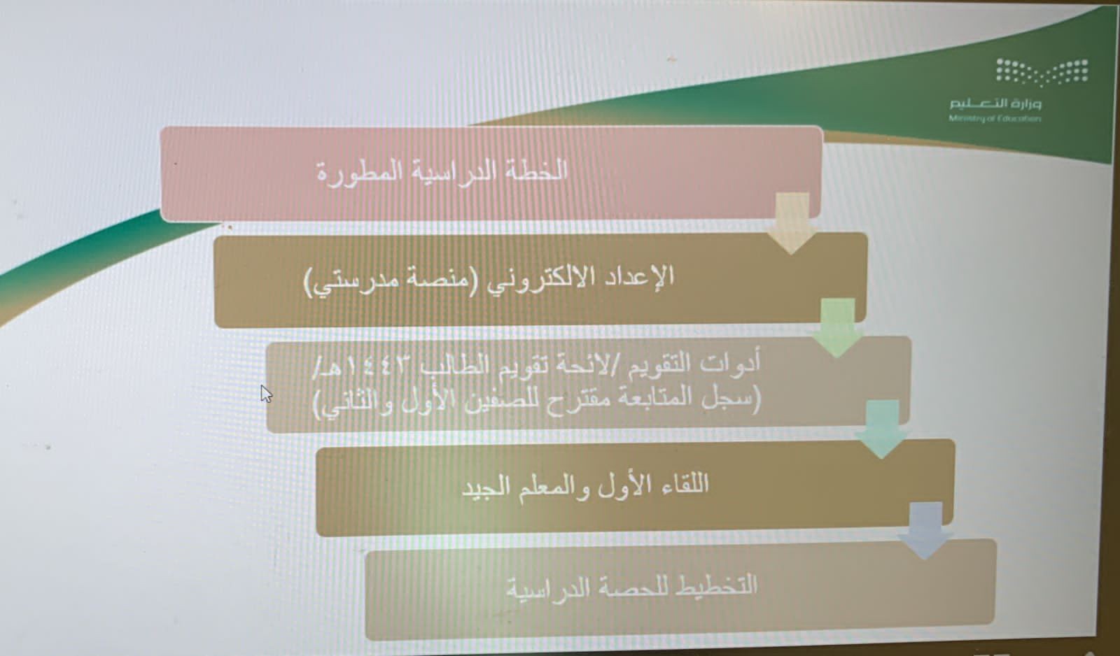 استهدف اللقاء ٢٤ معلمة من معلمات الصفوف الاولية وذلك بهدف تجويد العملية التعليمية واستعراض الخطة الدراسية المطورة و الإعداد الالكتروني لمنصة مدرستي وتوضيح أدوات التقويم ولائحة تقويم الطالب واللقاء الأول والمعلم الجيد وعرض التخطيط للحصة الدراسية.