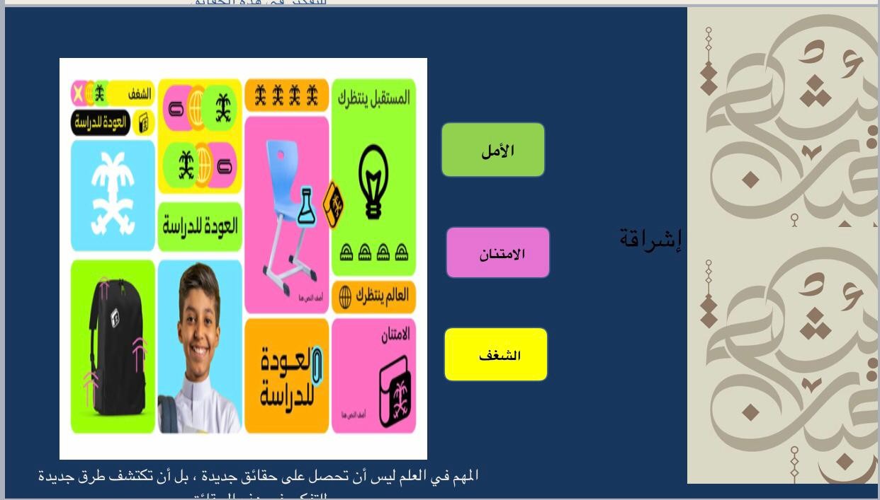 أقامت الإدارة العامة للتعليم بمنطقة مكة المكرمة ممثلةً بمكتب تعليم جنوب مكة – شعبة اللغة العربية - يومي الأربعاء والخميس الموافق 11-12/2/1444هـ، اللقاء الاستطلاعي الأول (مؤشرات أداء المعلمة وتطويره) نفذهُ مشرفات اللغة العربية كُلاً من سميحة الراجحي - نوال الشهري – بدرية المالكي – خيرية اللهيبي – فائزة اللهيبي بإشراف مديرة المكتب رحمة القحطاني.
