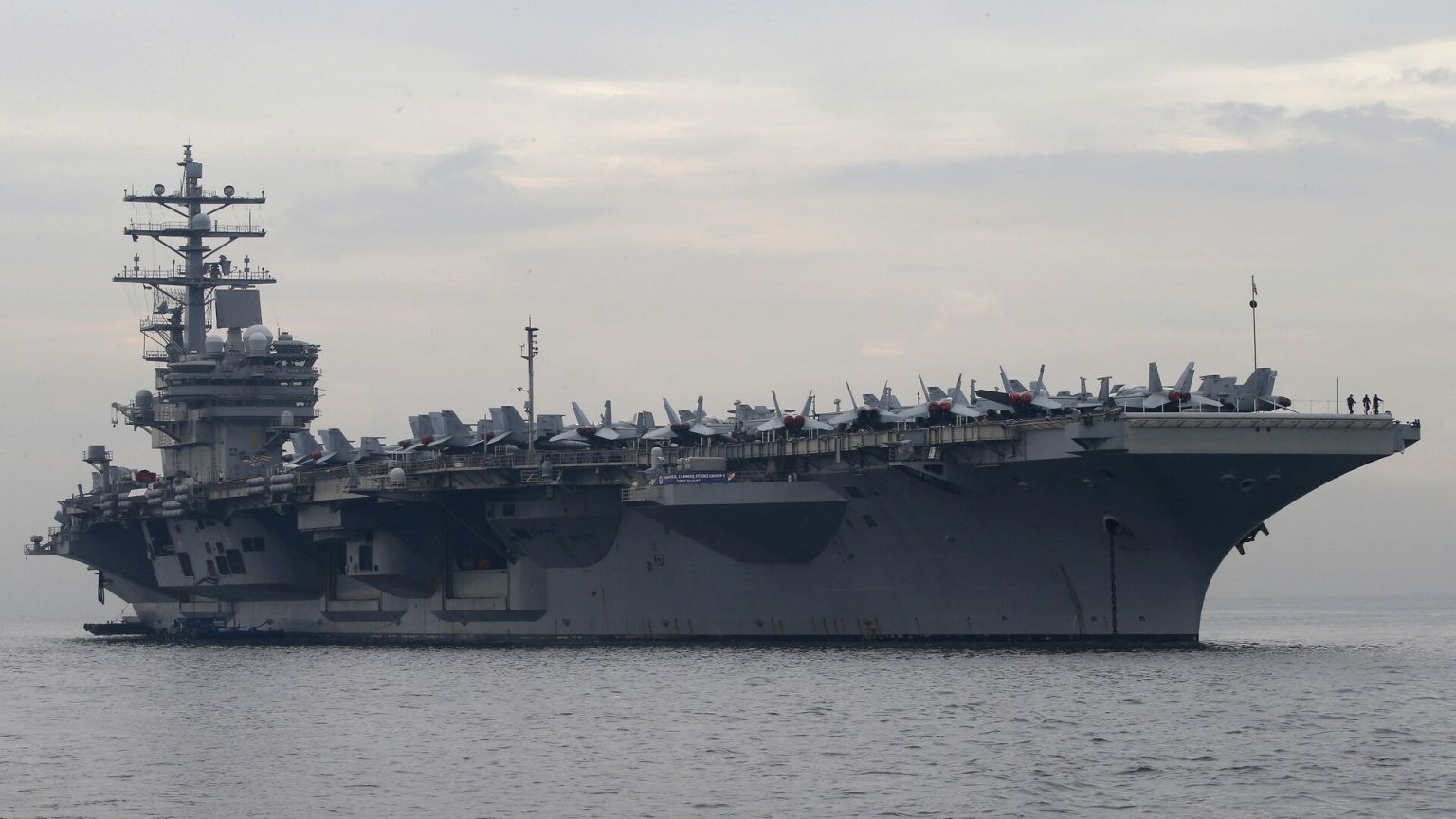 ورست السفينة يو إس إس رونالد ريغان، التي تعمل بالطاقة النووية، وسفن مجموعتها الضاربة، في مدينة بوسان الساحلية الجنوبية، في إطار مساعي سيول وواشنطن إلى تعزيز الأصول الاستراتيجية الأمريكية في المنطقة.