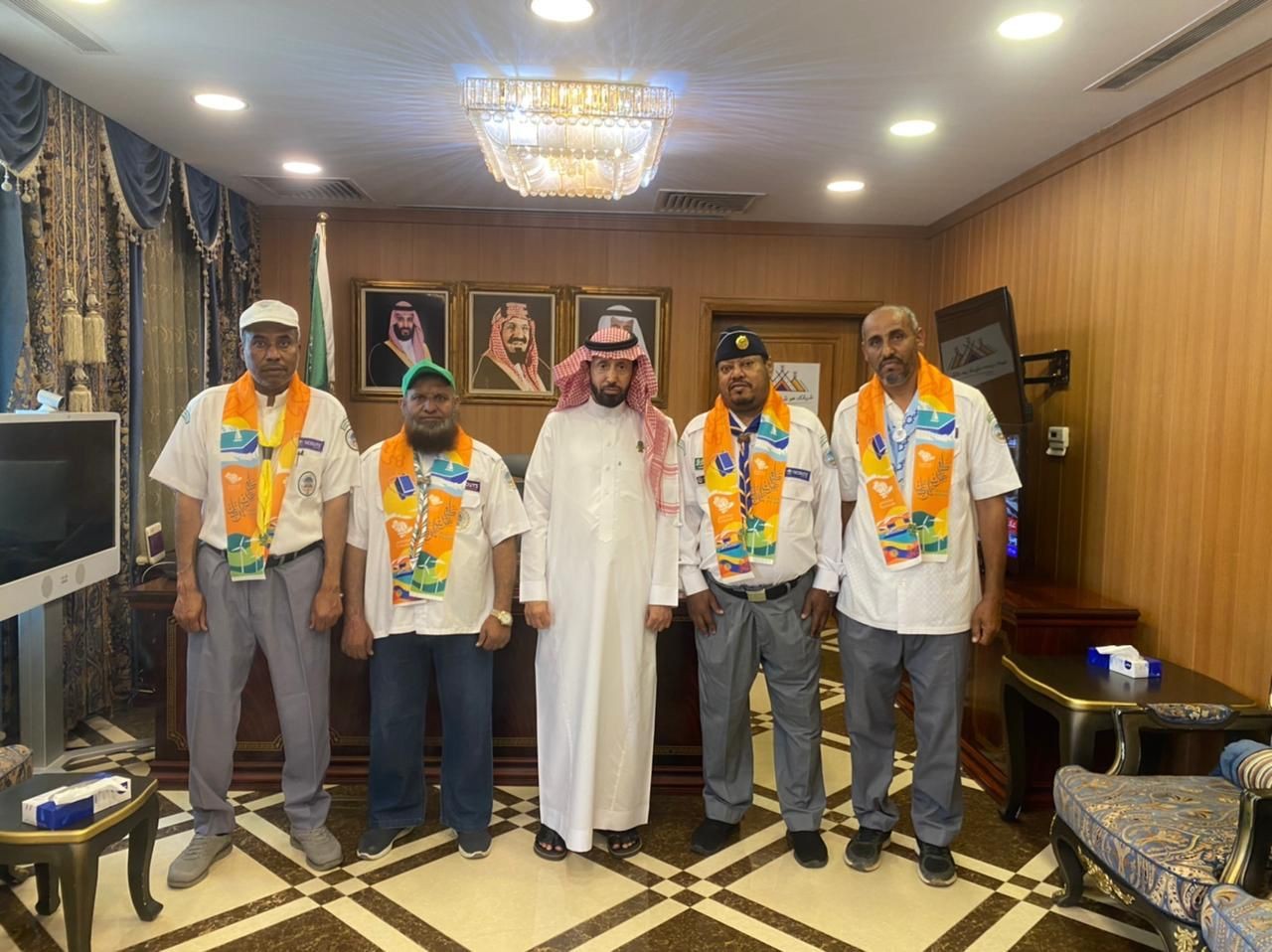 التقى محافظ محايل علي بن إبراهيم الفلقي بمكتبه ظهر اليوم عددًا من مكتب رواد كشافة محايل لتهنئته بمناسبة اليوم الوطني ٩٢ ، وقدموا وسام المكتب للمحافظ وقد نقلوا مشاعر الحب والولاء للقيادة الرشيدة سائلين المولى عز وجل أن يديم نعمة الأمن والأمان في ظل القيادة الرشيدة أيدها الله بنصرة وتوفيقه،واشاد محافظ محايل بمبادرة الرواد بالاحتفاء بيوم الوطن. وما يقدمونه من جهود فاعلة ومبادرات تطوعية ومجتمعية يأتي من أبرزها خدمة الحجاج ومشروع رسل السلام الذي انطلق من هذا الوطن الغالي،،،