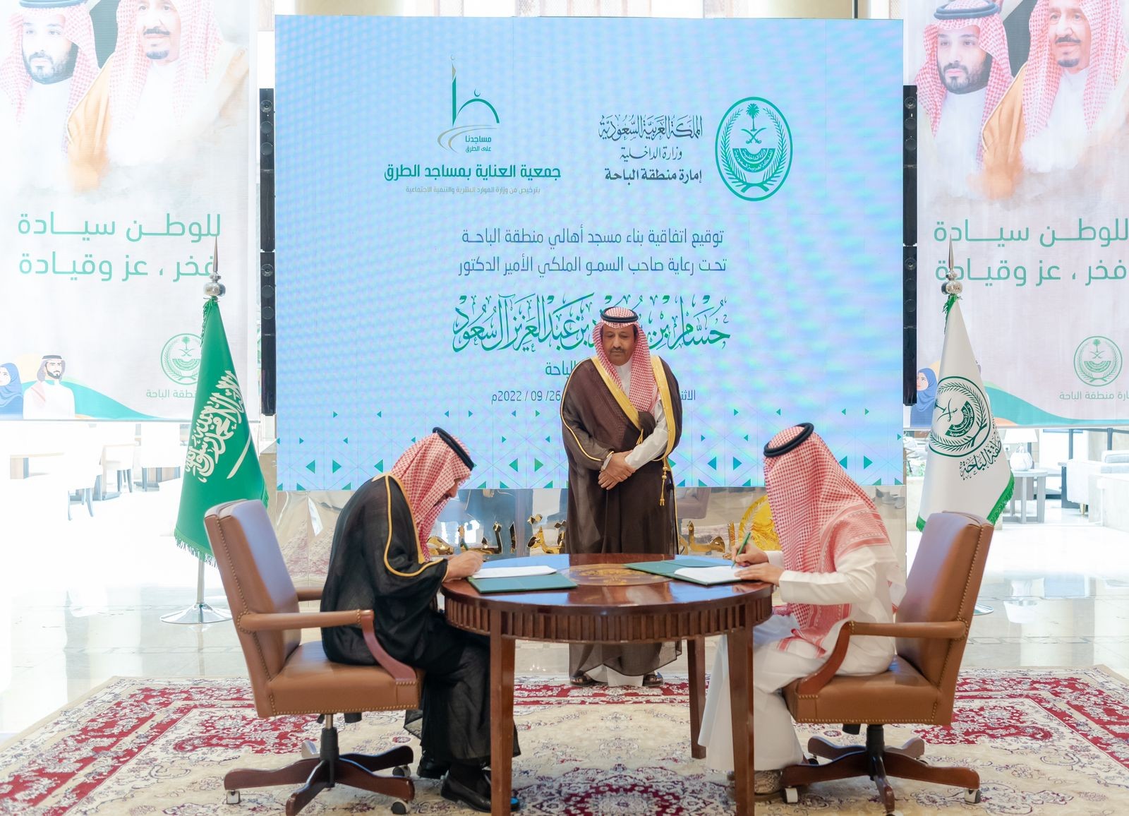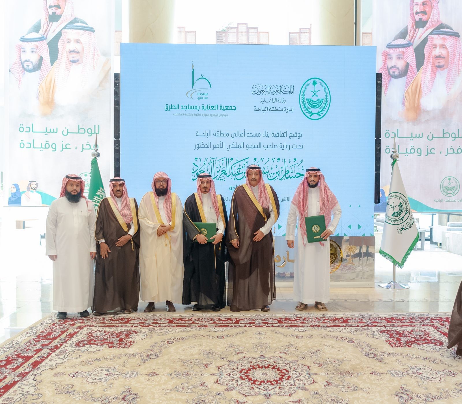 شهد صاحب السمو الملكي الأمير الدكتور حسام بن سعود بن عبدالعزيز أمير منطقة الباحة توقيع اتفاقية بين جمعية العناية بمساجد الطرق وإمارة منطقة الباحة، وقد مثل الإمارة سعادة وكيل الإمارة الأستاذ عبدالمنعم بن ياسين الشهري، ومثل الجمعية سعادة مدير عام جمعية العناية بمساجد الطرق المهندس عمر بن عبدالعزيز المبارك، حيث تعد هذه الاتفاقية الأولى من نوعها على مستوى المملكة وذلك لبناء مسجد نموذجي على طريق مطار الملك سعود (الباحة - العقيق) باسم مسجد (أهالي منطقة الباحة) على نفقتهم، من خلال المشاركة والتبرع على صفحة المتجر الإلكتروني للجمعية http://store.msajidona.org.sa/p/47007 مع إشراف إمارة المنطقة على الأعمال الميدانية وتنفيذ مراحل المشروع بدون توقف .