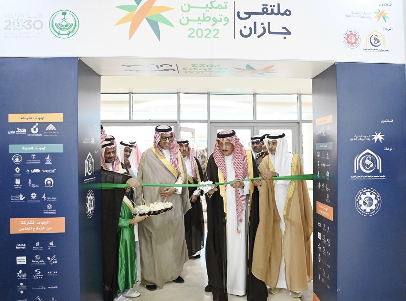 رعى صاحب السمو الملكي الأمير محمد بن ناصر بن عبدالعزيز أمير منطقة جازان اليوم، انطلاق فعاليات ملتقى جازان 2030 "تمكين وتوطين", الذي ينظمه فرع وزارة الموارد البشرية والتنمية الاجتماعية بالمنطقة، وذلك بمركز الأمير سلطان الحضاري بمدينة جيزان.