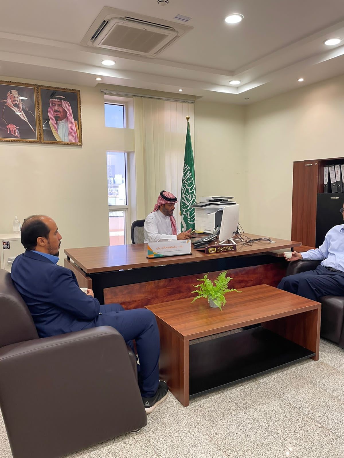 اجتمع يوم الخميس الموافق ١٤٤٤/٣/١٠ هًـ مدير مكتب الضمان الاجتماعي بالجوف الاستاذ / زياد بن ابراهيم الدرعان بمدير المعهد الصناعي بالجوف الاستاذ المهندس : محمد مرشد العنزي خلال استقباله بمقر مكتب الضمان الاجتماعي .