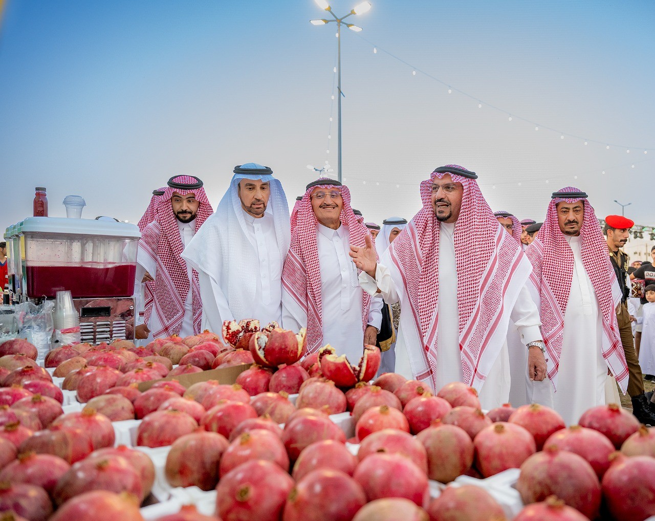 واطلع سمو أمير القصيم خلال زيارته على إنتاج 92 مزرعة ومشاركة 145 أسرة منتجة وعدد من المعارض المساهمة في تعزيز مفهوم الصناعات التحويلية لفاكهة الرمان، وجهود المهتمين بالشأن الزراعي والعديد من الشركات والقائمين على القطاع الخاص ذوي الاهتمامات الزراعية، والعديد من العارضين من مزارعي المنطقة بمختلف أنواع محاصيل الرمان .