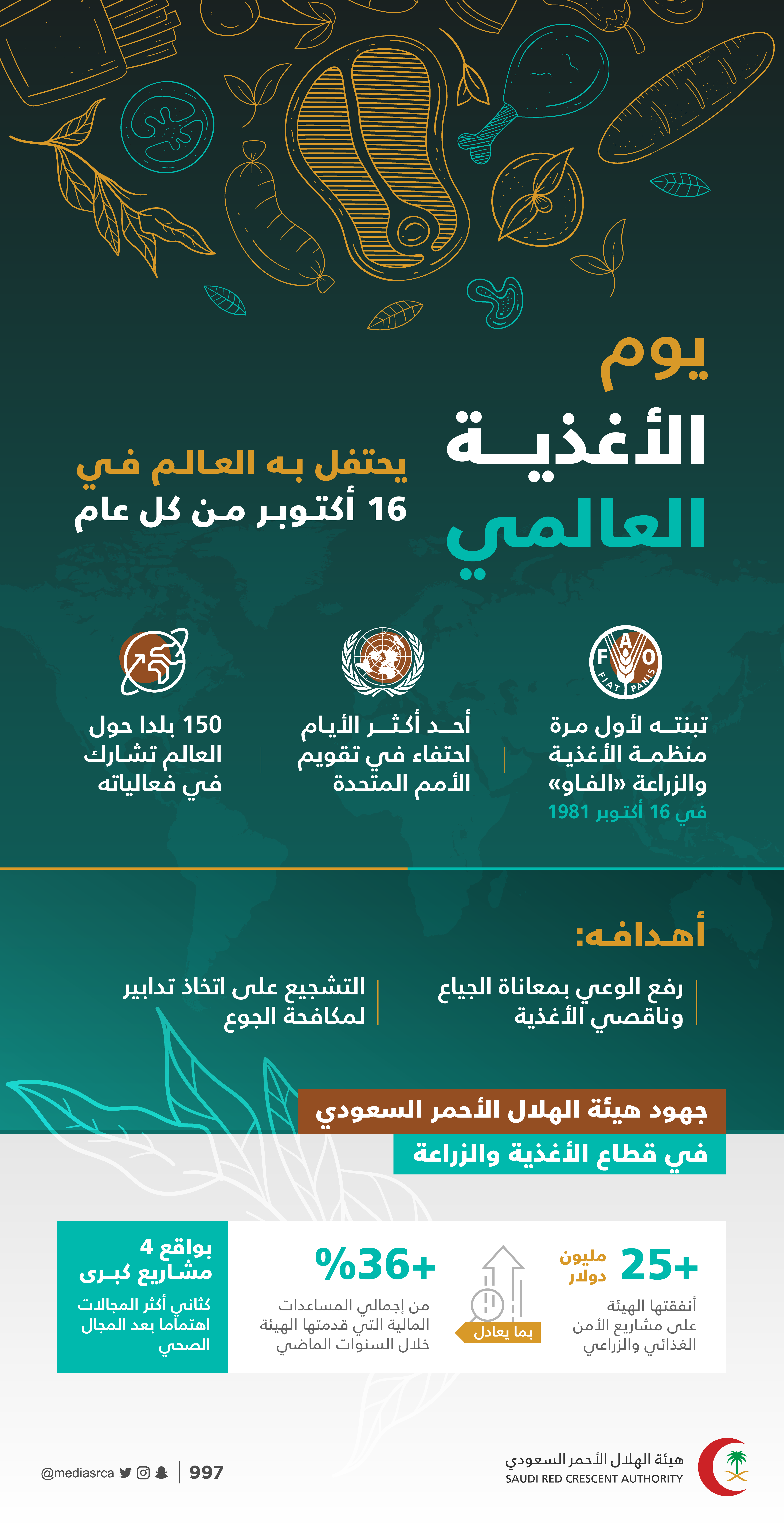 في يوم الأغذية العالمي.. الهلال الأحمر السعودي: أنفقنا أكثر من 25 مليون دولار على مشاريع الأمن الغذائي والزراعي