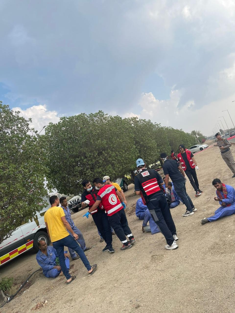 وتفصيلاً: أوضحت الهيئة عند تلقيها البلاغ استجابت على الفور بتوجيه ثماني فرق اسعافية من الهلال الأحمر بقيادة القائد الميداني، وعند وصول أول فرقة إسعافية للموقع اتضح وجود ٢٠ حالة إسعافية وعلى الفور قامت الهيئة بفرز الاصابات بعد اخلائها من قبل الدفاع المدني حيث اتضح تعرض أحدهم لإصابة خطيرة وثلاث أخرى لإصابات متوسطة فيما صنفت بقية الحالات بالطفيفة.