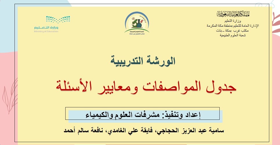 شعبة العلوم الطبيعية بمكتب تعليم غرب مكة تنفذ ورشة جدول المواصفات ومعايير الأسئلة