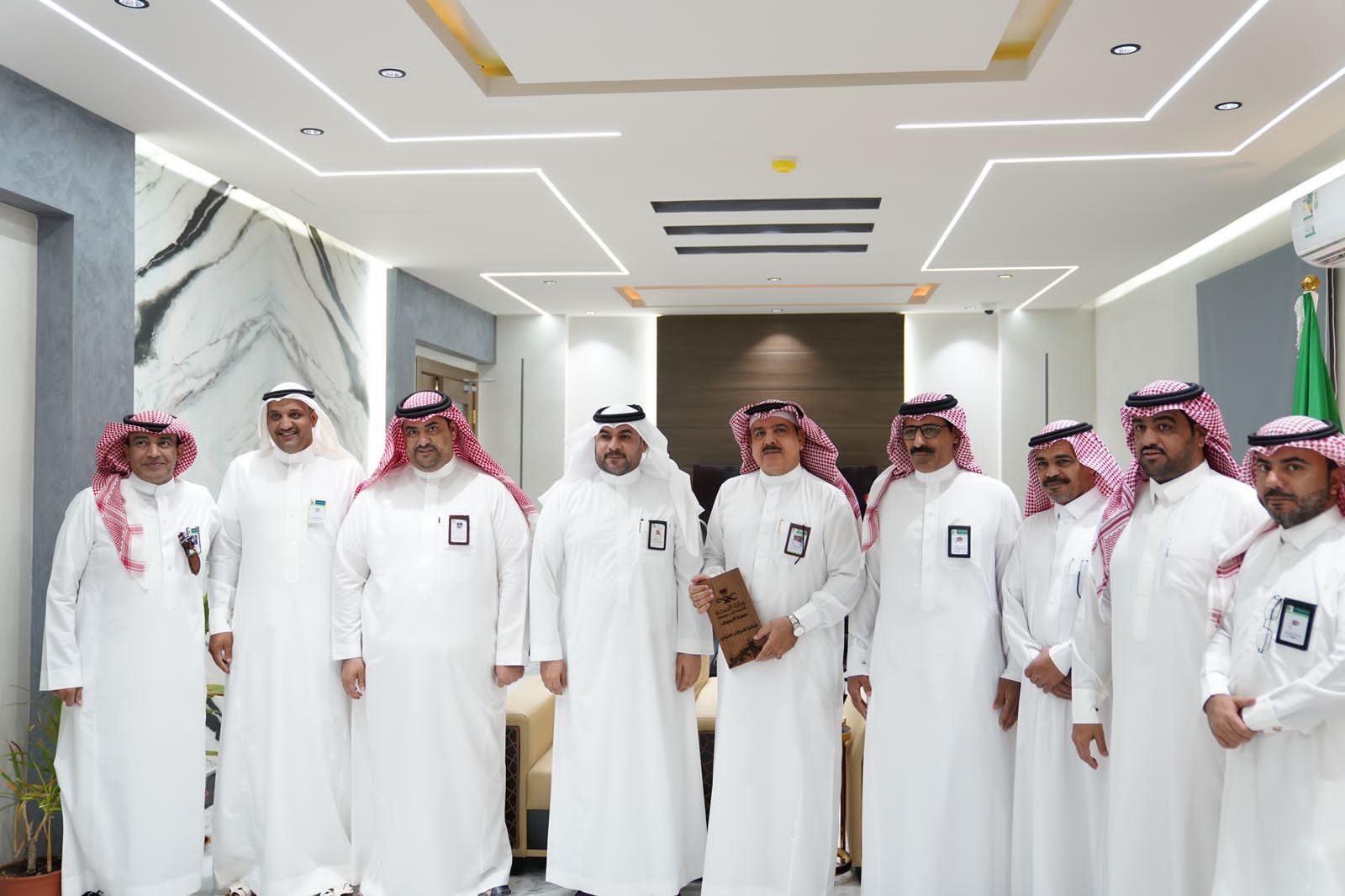 وفي نهاية اللقاء قدم الأستاذ فارس الرويلي درعأ تذكاريًا لمدير فرع الهيئة الأستاذ محمد السياط، مثماً له هذه الزيارة . كما قدم السياط شكره وتقديره للأستاذ فارس الرويلي على حفاوة الاستقبال .