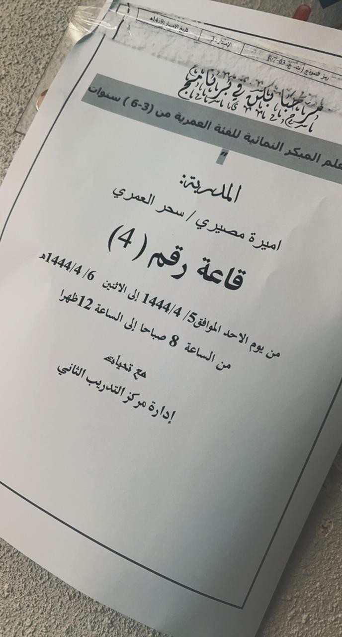 نفذت الإدارة العامة للتعليم بمنطقة مكة المكرمة ممثلةً بإدارة الطفولة المبكرة ولمدة يومان إبتداءً من يوم الأحد الموافق: 4/ 4/ 1444هـ، ورشةً تدريبيةً بعنوان معايير التعلم المبكر النمائية للفئة العمرية من (3-6) سنوات نفذها كُلاً من المشرفة أميرة المصيري، والمشرفة سحر العمري بإشراف مديرة الإدارة زكية الصبحي.