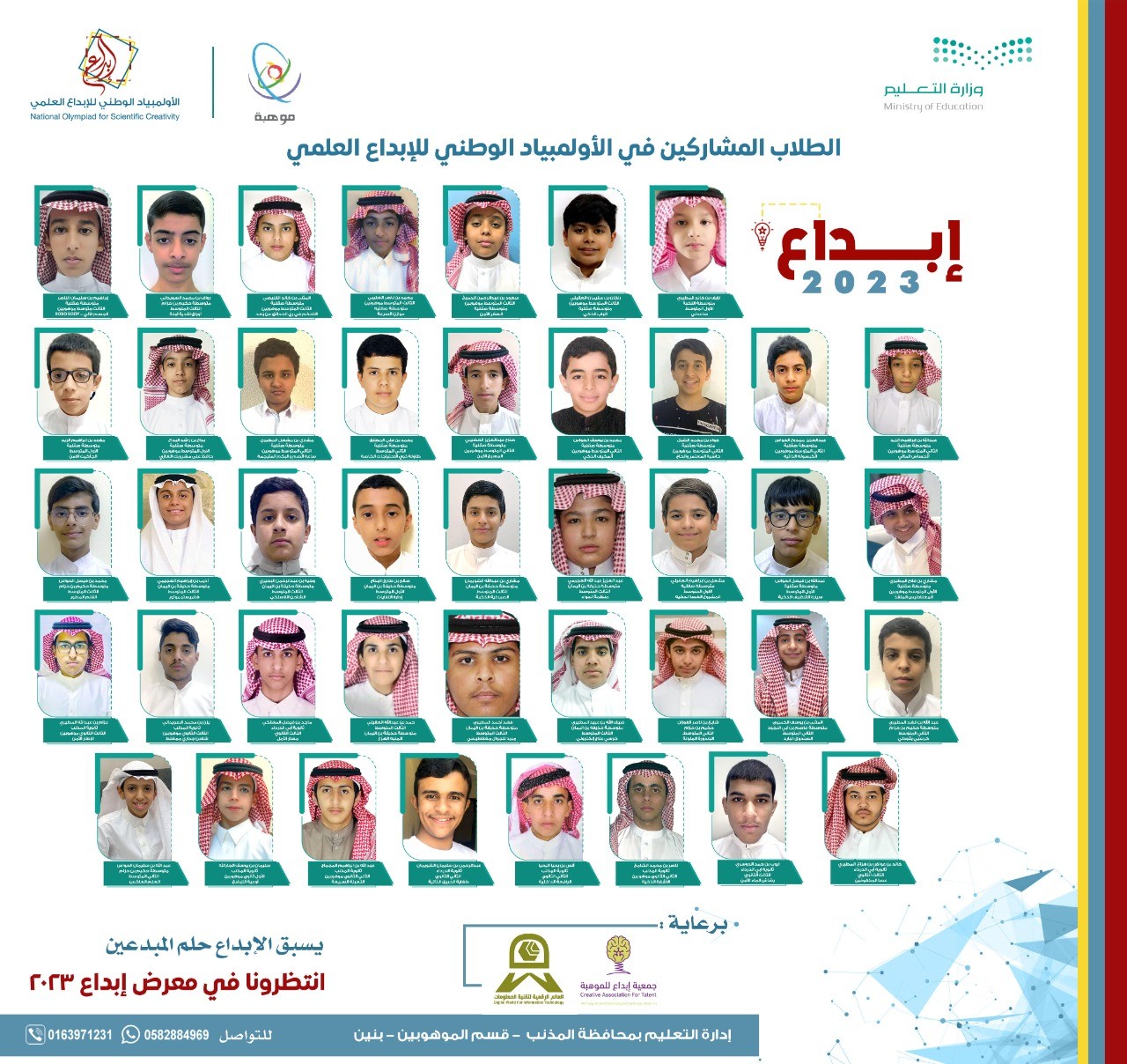 وأوضح رئيس قسم الموهوبين مدير المعرض حمد المطيري أن المعرض يُعدّ أحد أهم مراحل مسابقة الأولمبياد الوطني للإبداع العلمي "إبداع 2023" والذي تنظمه وزارة التعليم ومؤسسة الملك عبدالعزيز ورجاله للموهبة والإبداع "موهبة" وتعتبر مسابقة علمية سنوية تستهدف طلبة المرحلتين المتوسطة أو الثانوية، وهي قائمة على أساس التنافس في أحد المجالات العلمية، من خلال تقديم مشاريع علمية فردية وفقًا للمعايير والضوابط الخاصة المطلوبة. وتُحكّم المشاريع إلكترونيًا و حضورياً من قبل نخبة من الأكاديميين والمختصين وفق معايير علمية محددة بهدف تحديد المشاريع المتميزة لترشيحها للمراحل التنافسية الأعلى وتمثيل الوطن في المعارض والمحافل الدولية والعالمية ، مشيراً إلى أن هذا المعرض فرصة أمام الطلاب الموهوبين والمبدعين لعرض مشاريعهم العلمية والابتكارية والبحثية التي شاركوا بها في تلك المسابقة