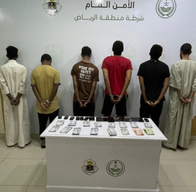 قبضت شرطة منطقة الرياض على (5) مخالفين لنظام أمن الحدود من الجنسية الإثيوبية ومقيم من الجنسية الصومالية لارتكابهم حوادث جنائية تمثلت في الترصد لعملاء المصارف والبنوك وسلبهم ما بحوزتهم من أموال باستخدام مركبة مسروقة (تم استردادها) وأسلحة بيضاء وتحويلها إلى خارج المملكة بطرق غير مشروعة، وضبط بحوزتهم مبلغ (65,000) ريال، وجرى إيقافهم واتخاذ الإجراءات النظامية بحقهم، وإحالتهم إلى النيابة العامة.