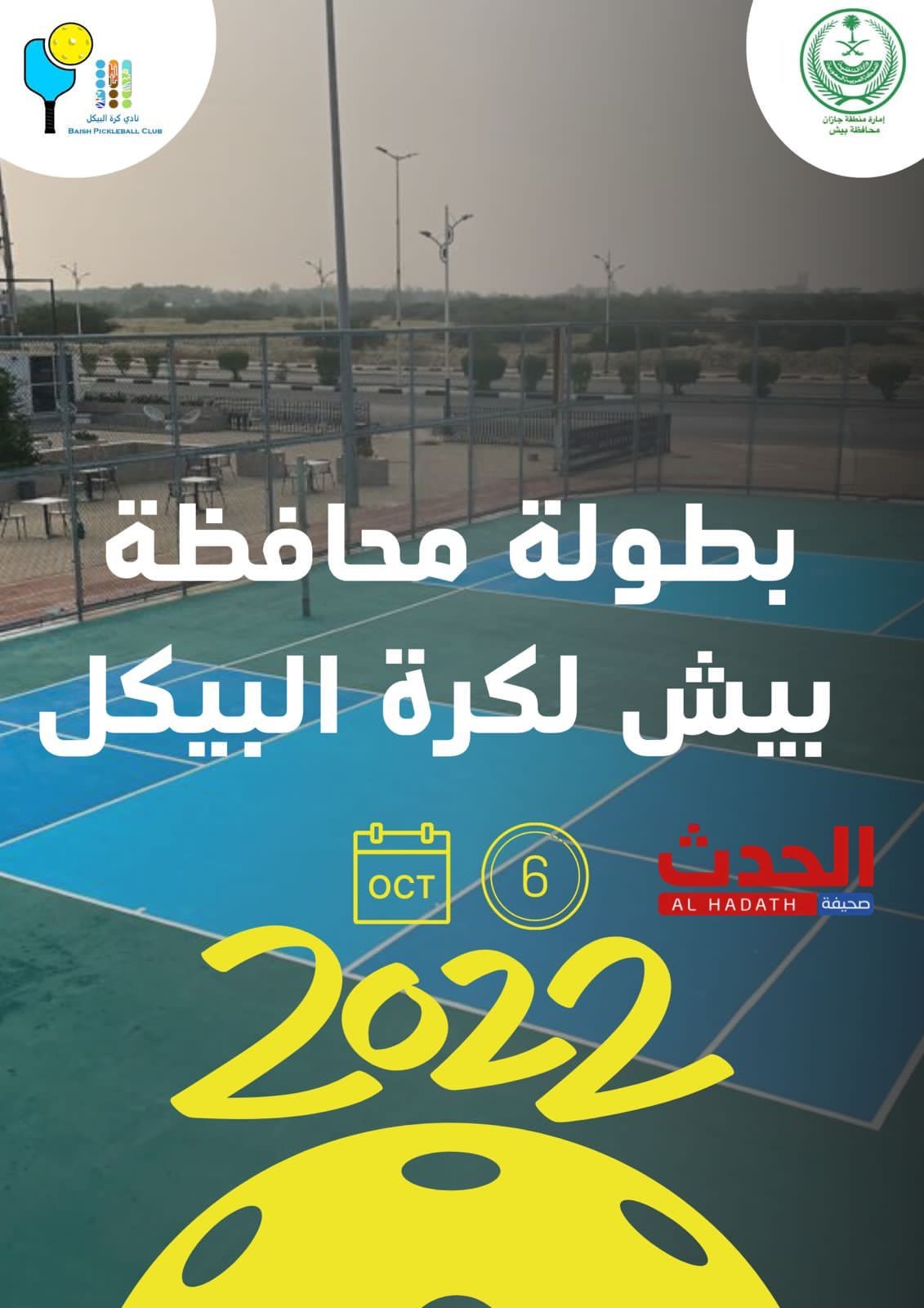 تنطلق مساء اليوم الاحد الموافق 6 نوفمبر 2022  بطولة محافطة بيش لكرة البيكل تحت رعاية محافظة بيش وذلك بملعب البلدية الواقع بجوار كوفي "بلون" شمال المحافظة .
