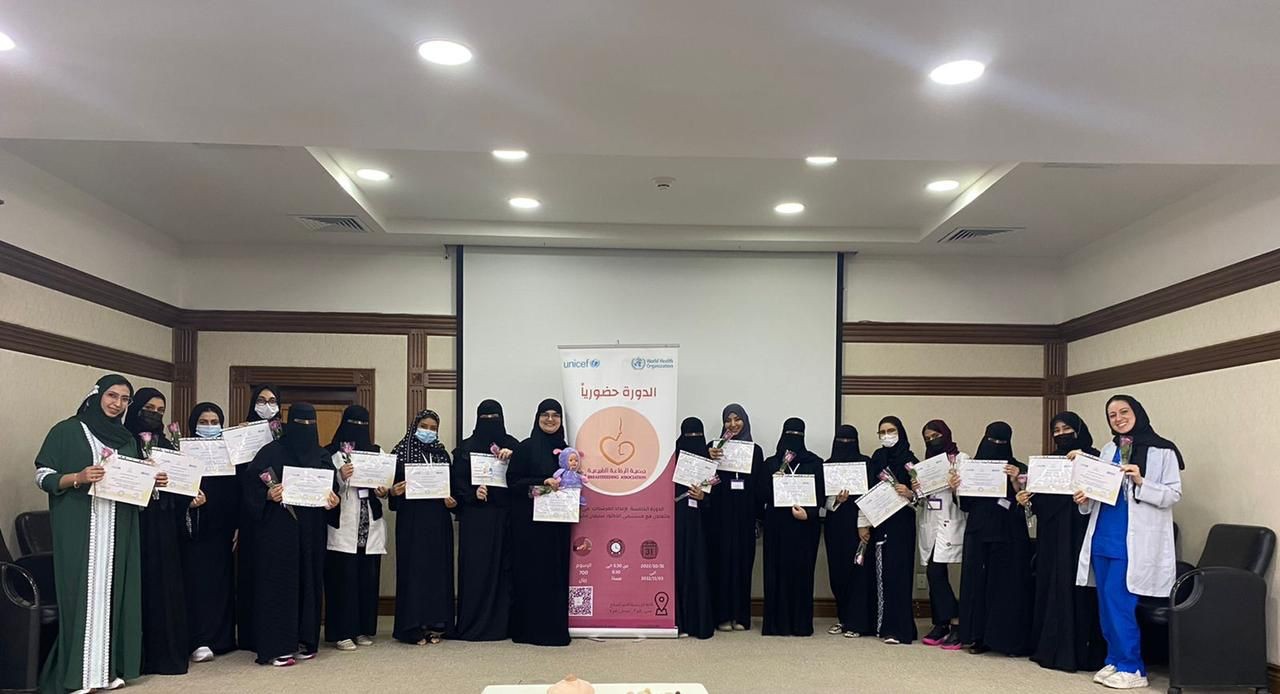 29 قيادة نسائية جديدة، تنشر ثقافة الرضاعة الطبيعية في جميع مدن ومناطق المملكة، جرى تأهيلهن على مدار 4 أيام بمستشفى الدكتور سليمان فقيه في جدة، على يد 15 استشارية وخبيرة ومتخصصة، خلال الدورة التوعوية الوطنية الخامسة التي تقدمها الجمعية السعودية للرضاعة الطبيعية، بهدف تأسيس مجتمع حيوي مفعم بالصحة والنشاط.