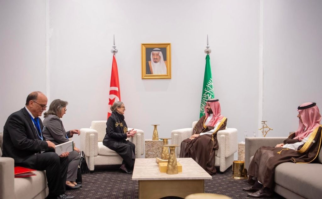 ولي العهد يلتقي رئيسة وزراء الجمهورية التونسية ويستعرضان العلاقات الثنائية