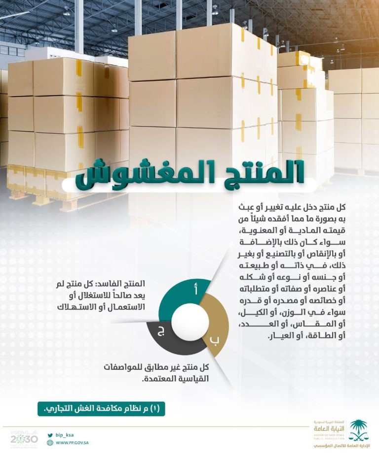 وقالت النيابة العامة ان المنتج المغشوش هو كل منتج دخل عليه تغيير أو عبث به بصورة ما مما أفقده شيئا من قيمته المادية أو المعنوية. سواء كان ذلك بالإضافة أو بالإنقاص أو بالتصنيع أو بغير ذلك. في ذاته أو طبيعته أو جنسه أو نوعه أو شكله أو عناصره أو صفاته أو متطلباته أو خصائصه أو مصدره أو قدره سواء في الوزن, أو الكيل, أو المقاس, آو العدد, أو الطاقة؛ أو العيار.