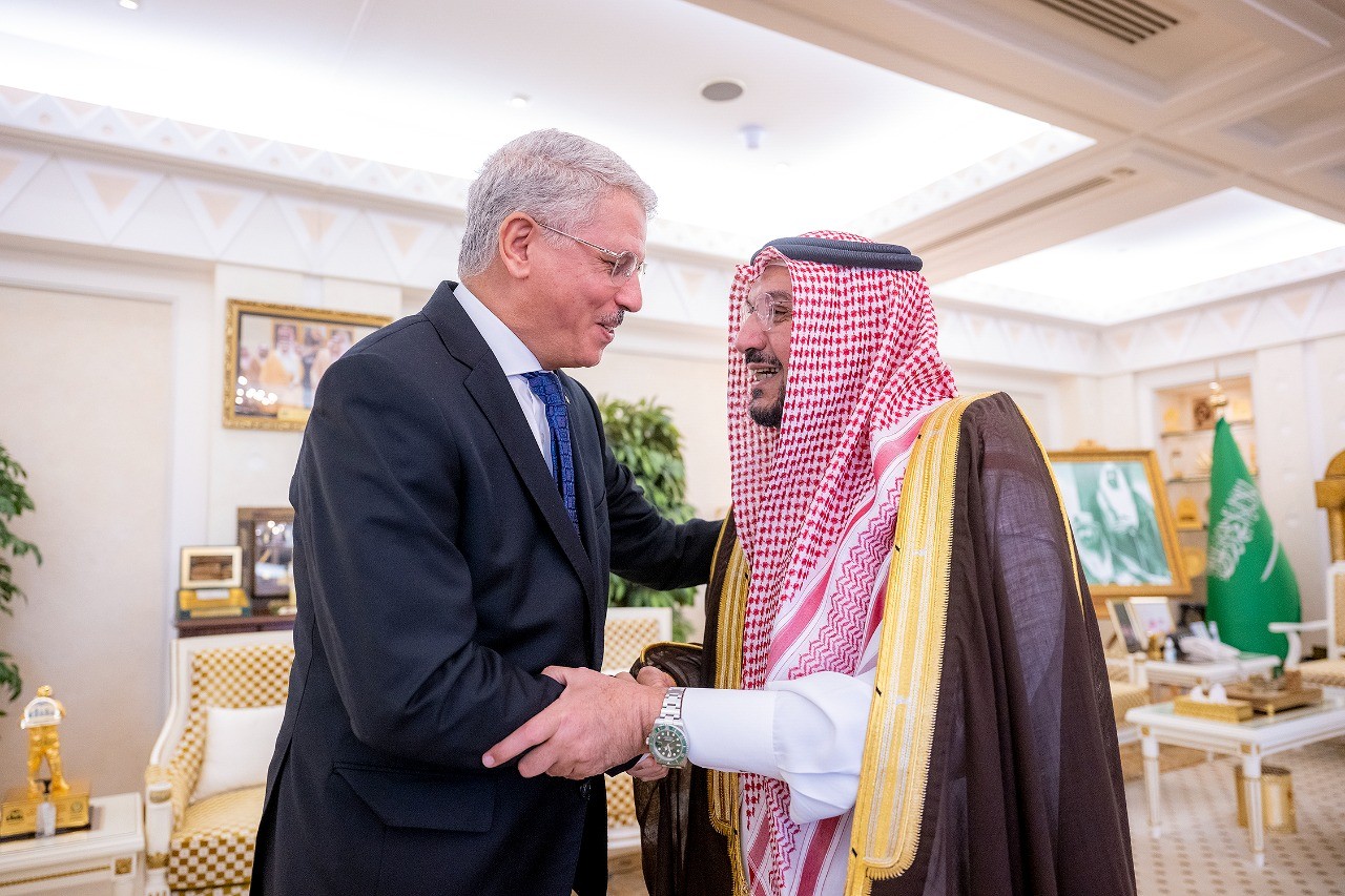 استقبل سمو أمير منطقة القصيم الأمير الدكتور فيصل بن مشعل بن سعود بن عبدالعزيز، في مكتبه بالإمارة اليوم، سفير الجزائر لدى المملكة الدكتور محمد علي بوغازي.