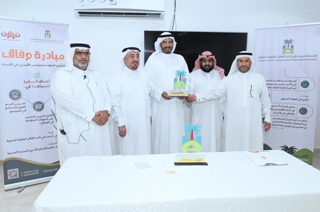 اختتمت مؤسسة حسين علي ناصر القطان الوقفية التنموية يوم الأربعاء 16-11-2022 الدورة التدريبية الأولى في مبادرة "وفاق" لتأهيل المصلحين الأسريين بالأحساء ، والذي أقيم على مدى أربعة أيام متتالية ، وذلك في مقر المؤسسة بمدينة المبرز،