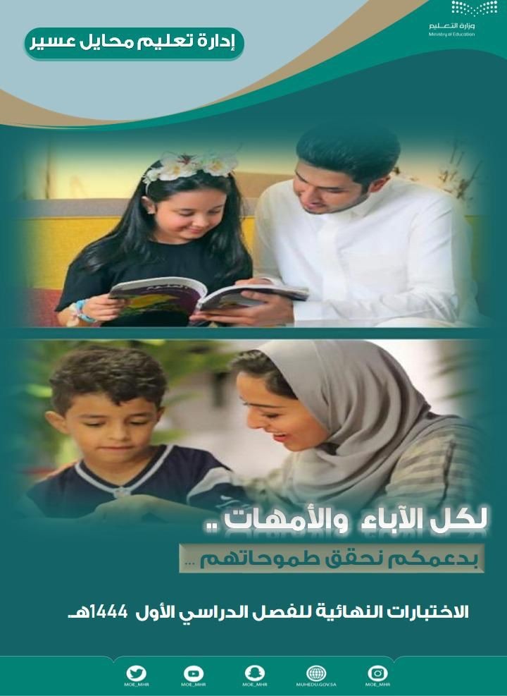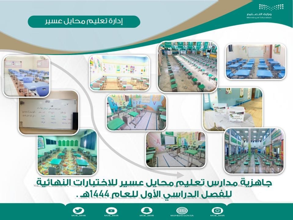 إدارة تعليم محايل عسير تعلن جاهزيتها لبدء الاختبارات النهائية للفصل الدراسي الأول للعام 1444هـ.