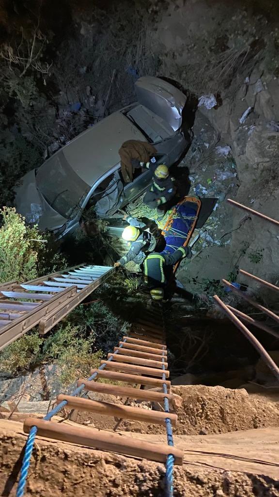 أنقذ مدني خميس مشيط شخصًا سقطت مركبته في بئر.