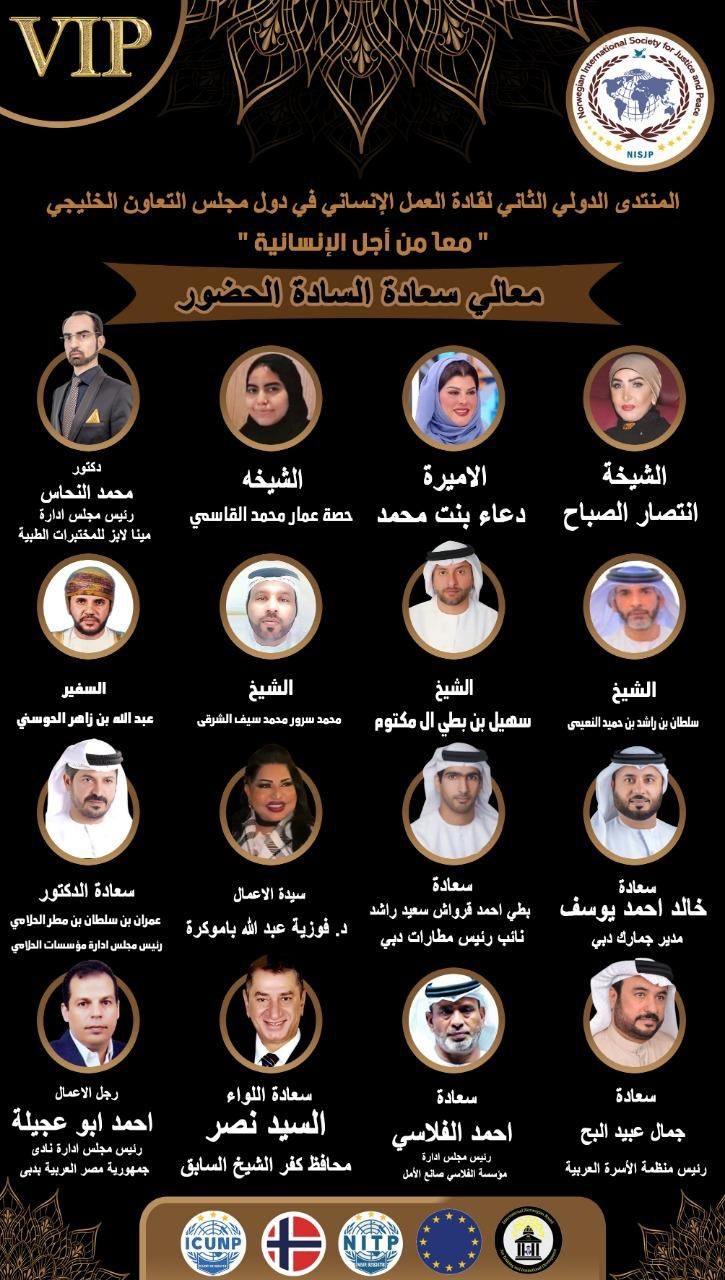 تكرم الجمعية النرويجية للعدالة والسلام في أوسلو، عددا من رموز المجتمع المدني والعمل الإنساني في دول مجلس التعاون الخليجي ومصر، وذلك على هامش انعقاد المنتدى الثاني الذي تنظمه الجمعية في شهر ديسمبر من كل عام، بدولة الإمارات العربية المتحدة.