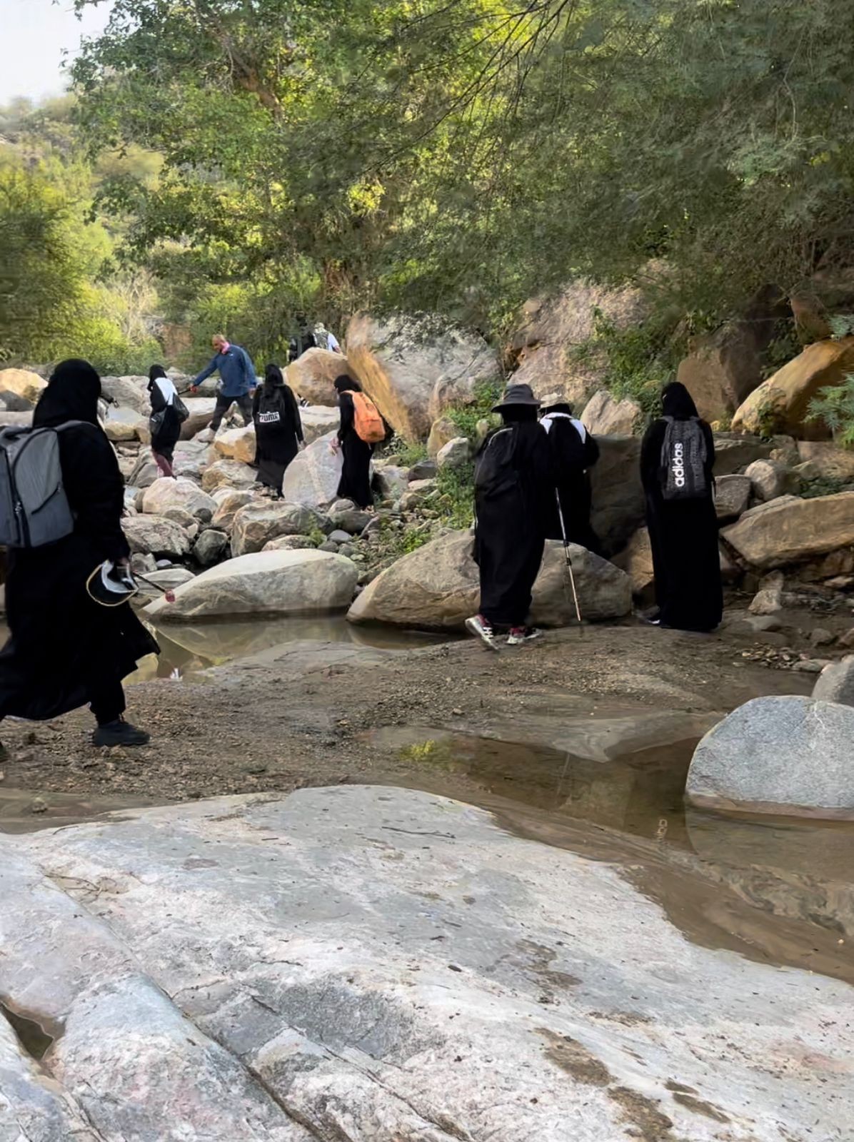 و أن الوقت الذي قطعت به المسافة 3ساعات مع الإستراحة كما اوضح الرفاعي أن عدد المشاركين 144مشارك من الجنسين بينهم 7 مرشدين تتنوع تخصصاتهم بين مرشدين سياحيين وهايكنج ومسعفين خلويين ومتخصصين في برنامج لا تترك اثر و من أهداف البرنامج التثقيف بقيمة لا تترك اثر البيئي وكيف نعمل على تطبيق سياحة بيئة مستدامة في المنطقة.