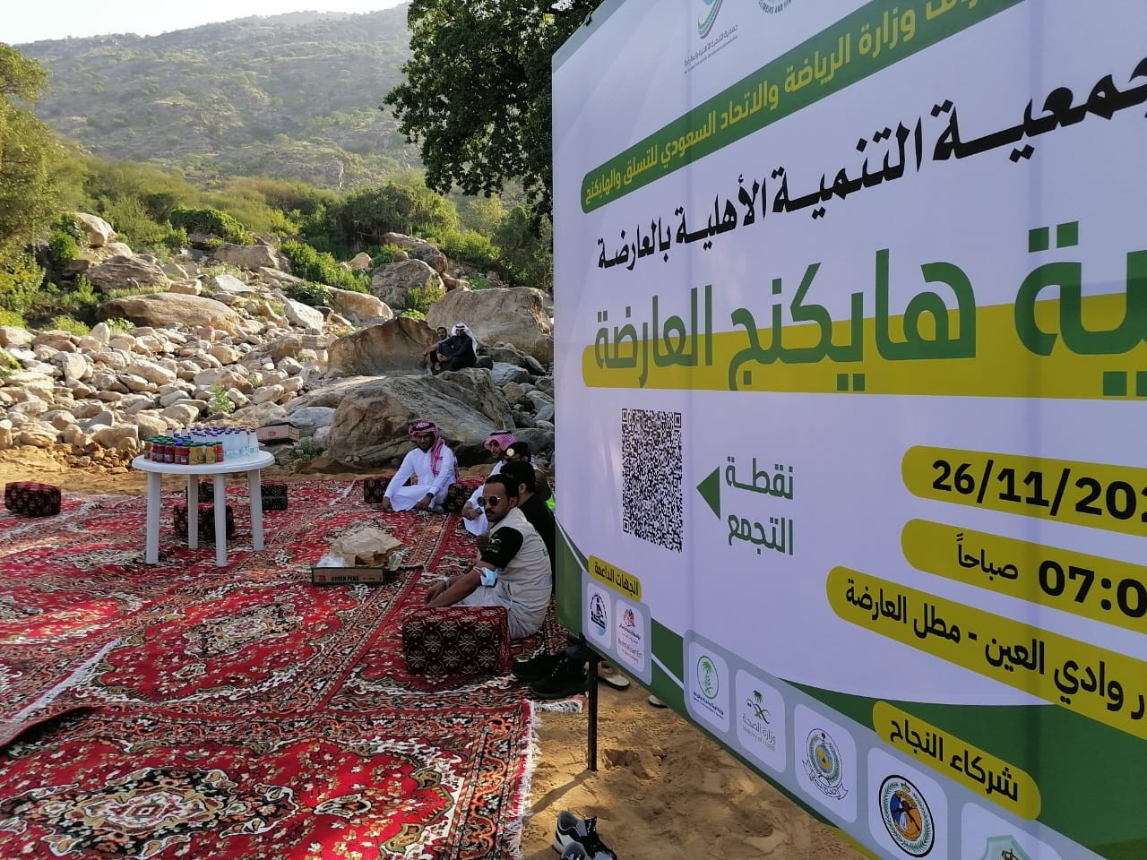 برعاية إمارة منطقة جازان ممثلة في محافظة العارضة وإشراف الاتحاد السعودي للتسلق والهايكنج استضافت جمعية التنمية الأهلية بالعارضة صباح اليوم السبت 26/11/2022 فعاليات هايكنج العارضة والذي يعتبر اول مسار لرياضة الهايكنج في منطقة جازان معتمد من الاتحاد السعوي للتسلق والهايكنج عبر مسار وادي العين بالعارضة