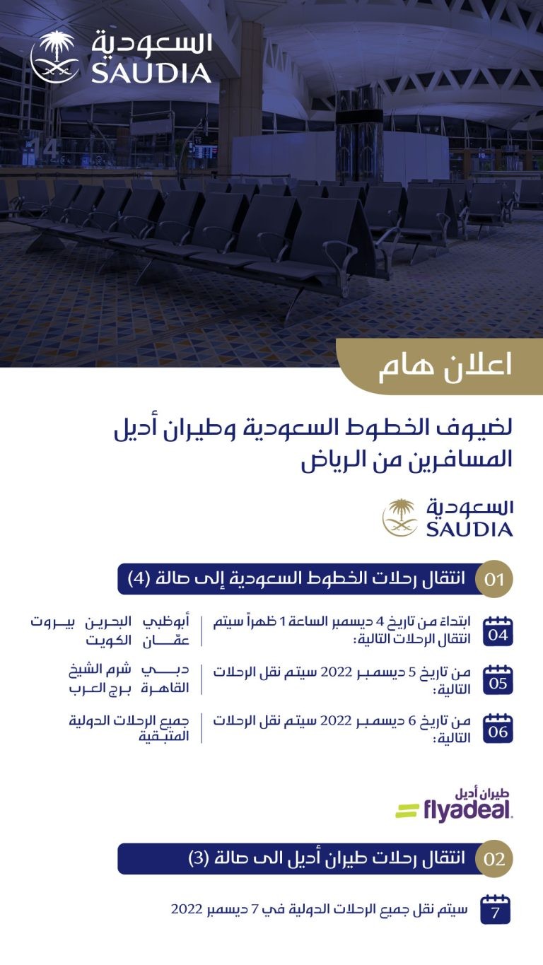 انتقال رحلات “الخطوط السعودية” الدولية بمطار الملك خالد الدولي إلى صالتي السفر 3 و 4