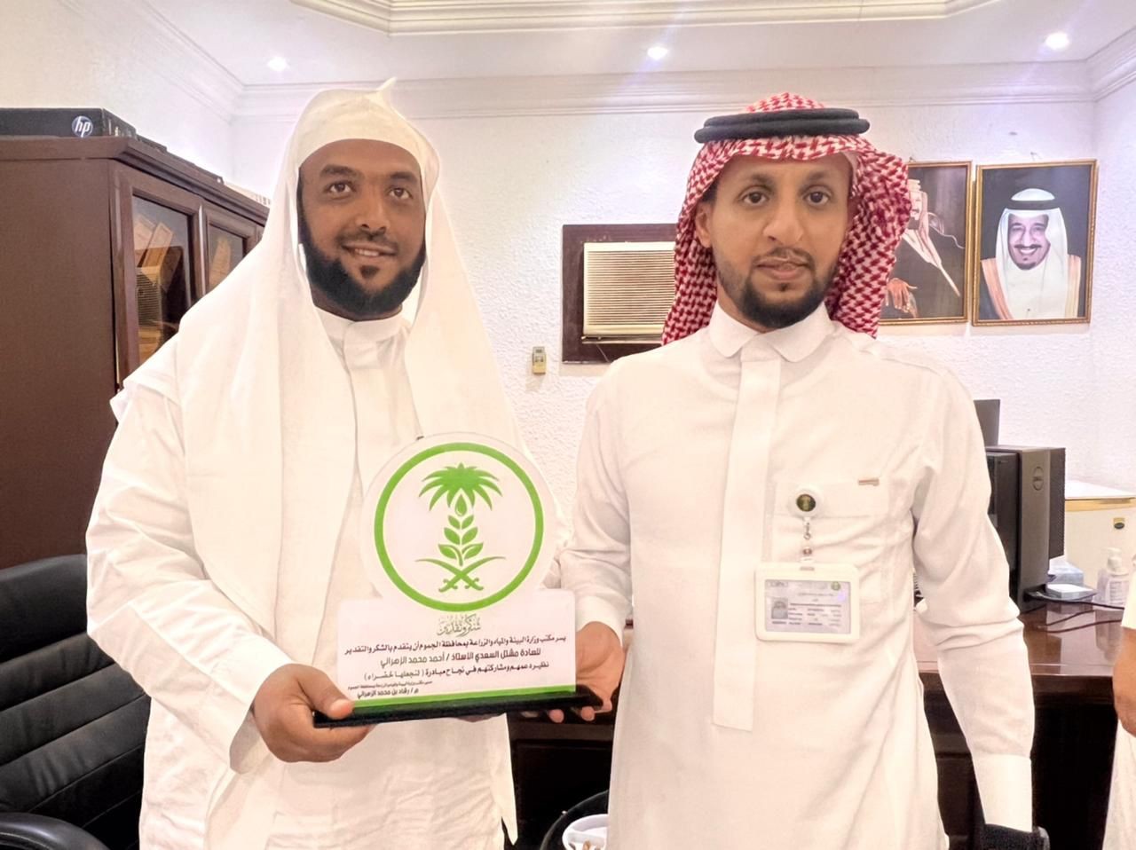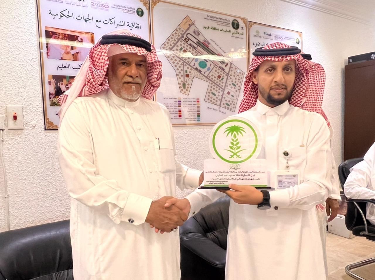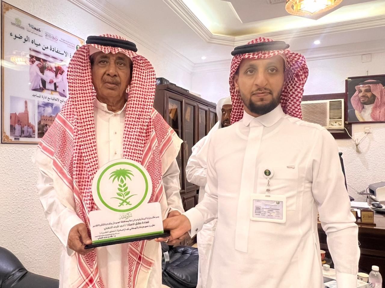 كرم مدير مكتب وزارة البيئة والمياه والزراعة بمحافظة الجموم المهندس رشاد الزهراني المساهمين والمشاركين في نجاح مبادرة " لنجعلها خضراء " في المحافظة بمناسبة اليوم العالمي للتطوع .