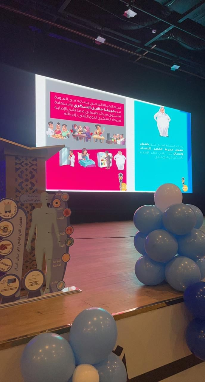 دشنت الإدارة العامة للتعليم بمنطقة مكة المكرمة ممثلة في إدارة الشؤون الصحية المدرسية فعاليات اليوم العالمي لمرضى السكري اليوم الأحد الموافق 1444/5/17هـ وذلك بالتعاون مع إدارة الصحة المدرسية في الصحة العامة والتجمع الصحي تحت شعار " تعلم اليوم من أجل حمايتك غدًا"و" معلوماتك اليوم حصانتك لبكرة" بقاعة الملك فهد -رحمه الله- وذلك بحضور مساعدة المدير العام للشؤون التعليمية أ. لمياء بشاوري.