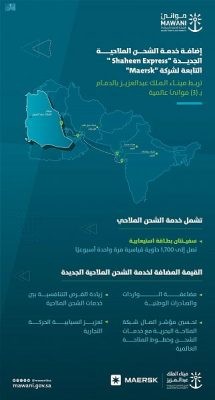 أعلنت الهيئة العامة للموانئ “موانئ” اليوم إضافة شركة “Maersk” خدمة الشحن الملاحية الجديدة “Shaheen Express” إلى ميناء الملك عبدالعزيز بالدمام، التي تسهم في تعزيز الحركة التجارية مع شبه القارة الهندية والخليج العربي.