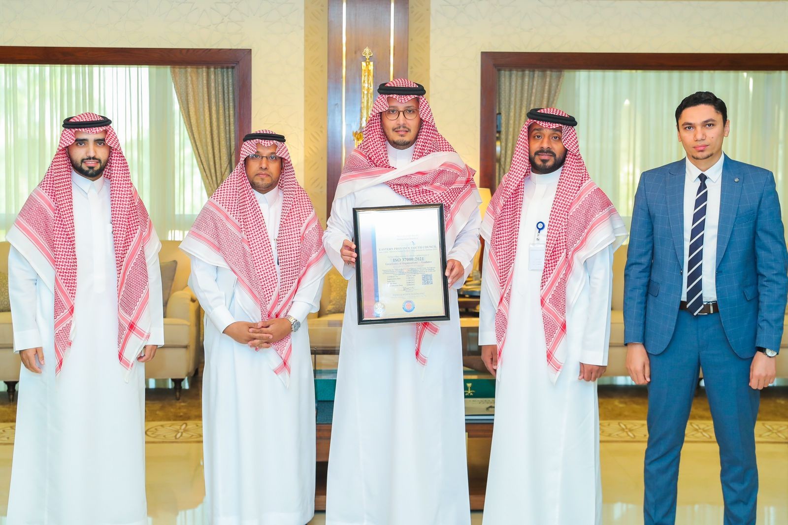 استقبل صاحب السمو الملكي الأمير أحمد بن فهد بن سلمان بن عبدالعزيز نائب أمير المنطقة الشرقية رئيس مجلس شباب المنطقة في مكتب سموه بديوان الإمارة اليوم الثلاثاء مجلس شباب المنطقة الشرقية، بمناسبة حصول المجلس على الاعتراف الدولي بتطبيق مواصفة النظام الاداري (ISO Certificates) في مجال الحوكمة المؤسسية، «الآيزو 2021--:ISO37000».