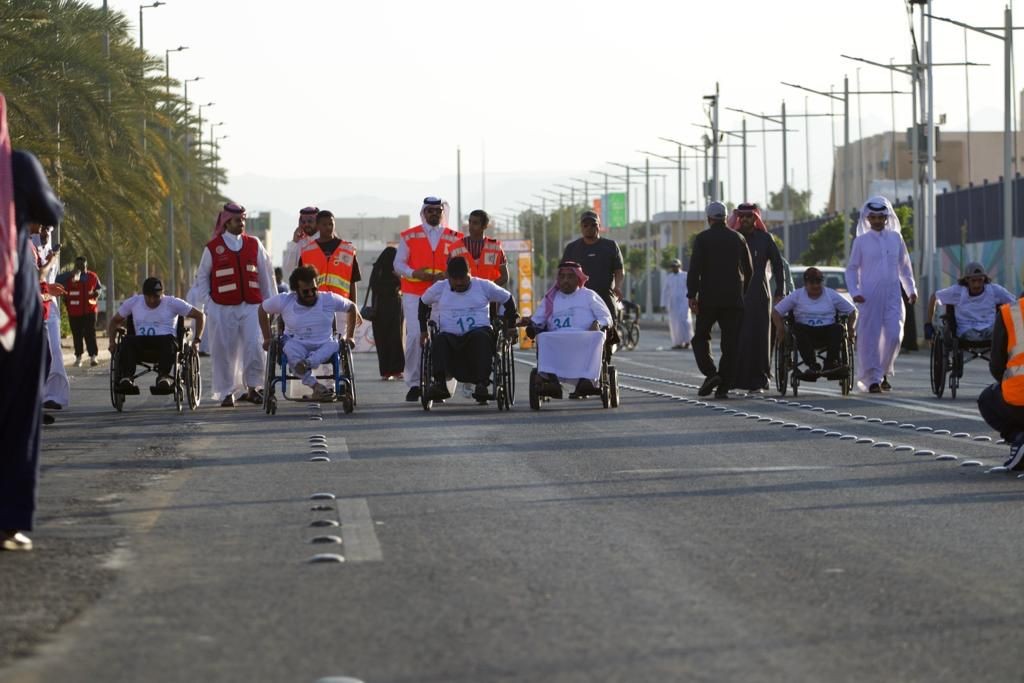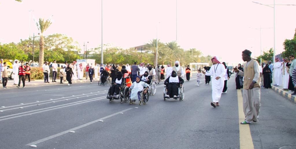 نظم فرع وزارة الموارد البشريه والتنمية الاجتماعية بمنطقة نجران ممثلًا بمركز التأهيل الشامل سباقاً للأشخاص ذوي الإعاقة بمسافة 100 متر سعياً منها لإشراك الأشخاص ذوي الإعاقة الحركية في مختلف المناسبات العامة والوطنية، من خلال تنظيم مبادرات وبرامج بناءة وأنشطة متنوعة بهدف دمجهم بالمجتمع وإدخال الفرح والسرور إلى نفوسهم ، وتوعية المجتمع بأهمية مساندتهم ، وتجسيد القيم الإنسانية والتكاتف والمشاركة في المسؤولية الاجتماعية التي حث عليها الدين الإسلامي الحنيف وتضمنتها القيم الإنسانية، وتوفير الحياة الكريمة لهم تماشيًا مع الرؤية الوطنية 2030
