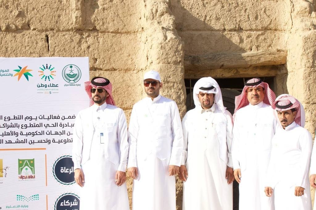 ضمن فعاليات يوم التطوع السعودي والعالمي ، أطلق فرع وزارة الموارد البشرية والتنمية الاجتماعية بنجران مبادرة "الحي المتطوع" بموافقة إمارة نجران ومشاركة عدد من الجهات الحكومية والأهلية ، وذلك في حي أبا السعود وبمشاركة عدد من المتطوعين والمتطوعات ، حيث تمت إزالة عدد من التشوهات البصريه وتحسين المشهد الحضري داخل الحي وصيانة عدد من المنازل وبيوت الطين الأثرية وكذلك الزراعة على الأرصفة وإعادة طلائها وتقديم السلال الغذائية للأسر المحتاجة