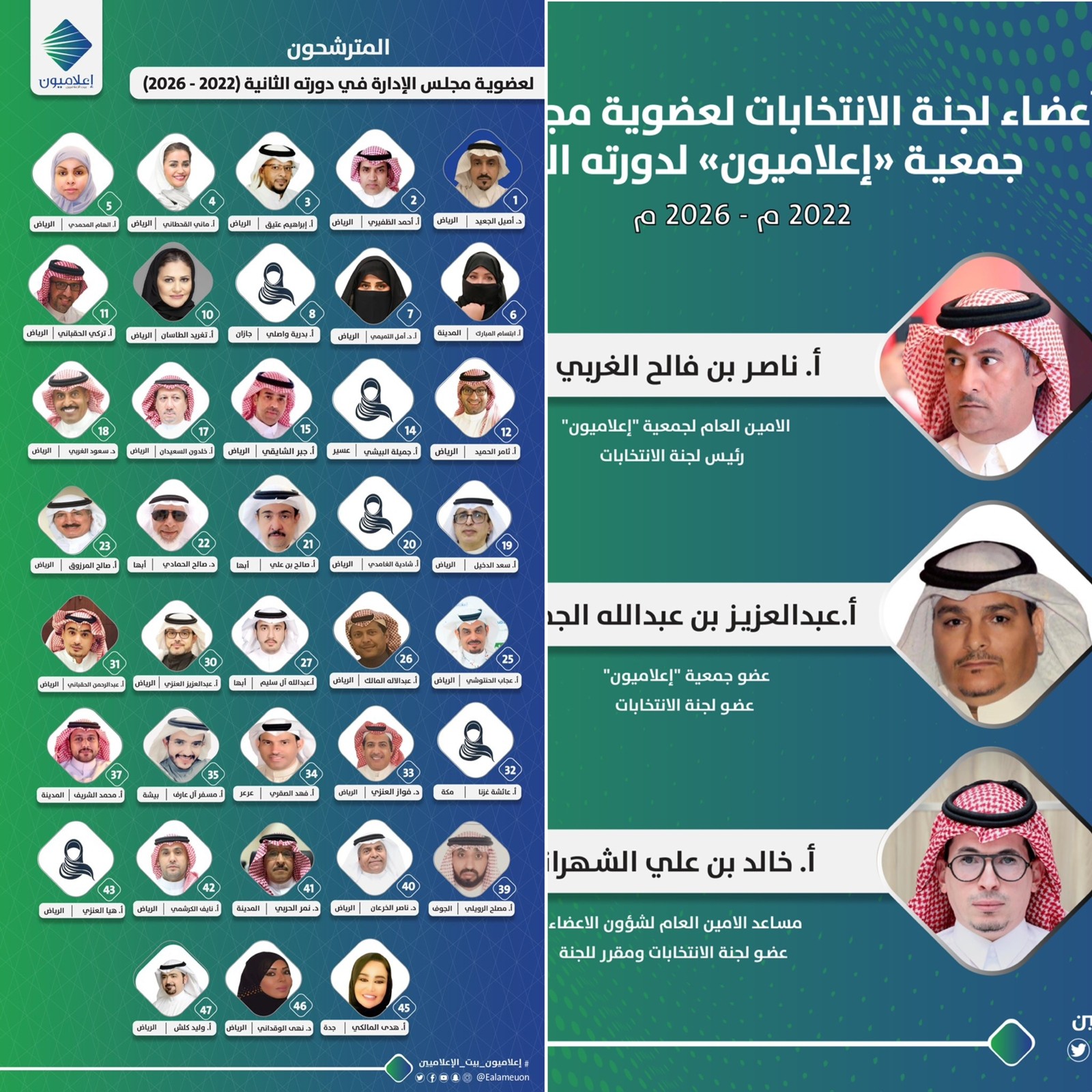 من جهته، بيّن الأمين العام لجمعية "إعلاميون" رئيس لجنة الانتخابات الزميل ناصر بن فالح الغربي، أن تقدم 37 مترشحًا لانتخابات مجلس إدارة جمعية يعتبر حدثًا غير مسبوق على مستوى الجمعيات في المملكة.