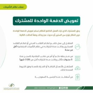 وجاء الرد عبر خدمة العناية بالعملاء عبر حسابها الرسمي بموقع “تويتر”، حددت من خلالها 4 حالات صرف تعويض الدفعة الواحدة قبل بلوغ الستين بأربع حالات.