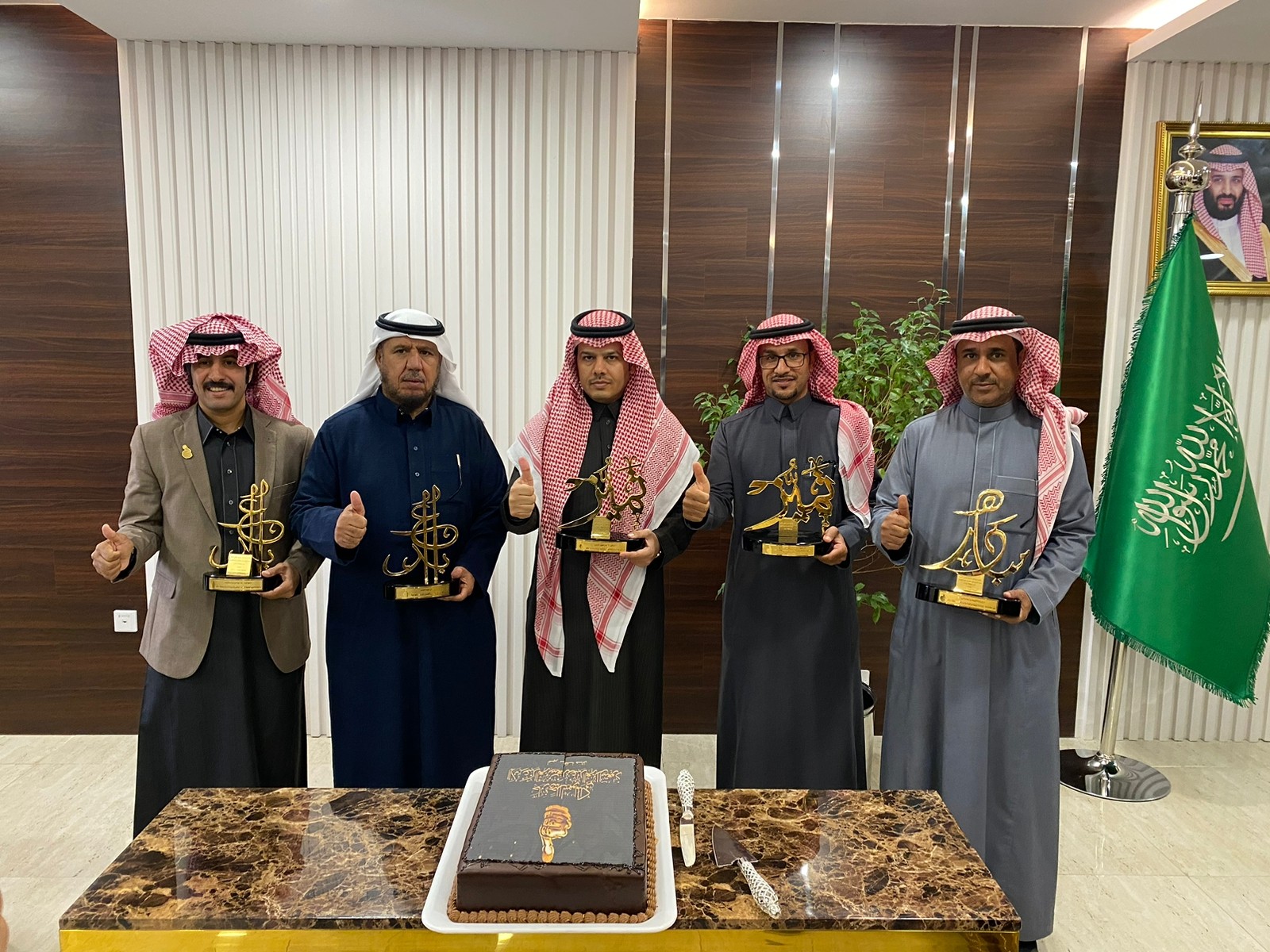 وكما قدم مدير عام فرع وزارة البيئة والزراعة والمياه الدكتور فهد الحسني التهاني والتبريكات للقطاع الزراعي الحاصلين على جائزة بصمة ( النحالين فهد القنون وفهد الغازي وجمعية ثراء التعاونية ) وذلك خلال استقباله لهم اليوم في مكتبه في مقر الفرع ، وأشاد الحسني بالجهود التي يبذلونها من أجل تطوير منتجات القطاع الزراعي بالمنطقة .