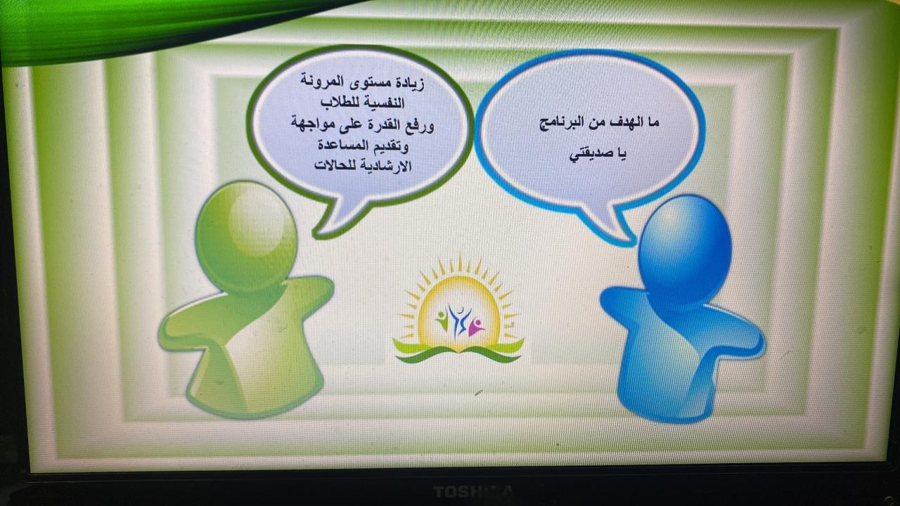 وذلك بهدف زيادة مستوى المرونة النفسية للطلاب ورفع القدرة على مواجهة الأزمات وتقديم المساعدة الإرشادية للحالات من خلال إيضاح مفهوم الأزمة وأنواعها، بالإضافة إلى ذكر الآثار الجانبية وخصائص الأزمة صاحب ذلك إبراز لدور أولياء الأمور الوقائي، والتنبيه على الطلاب باتباع الإرشادات والتوجيهات من المركز الوطني للأرصاد والابتعاد عن أماكن السيول والأودية.