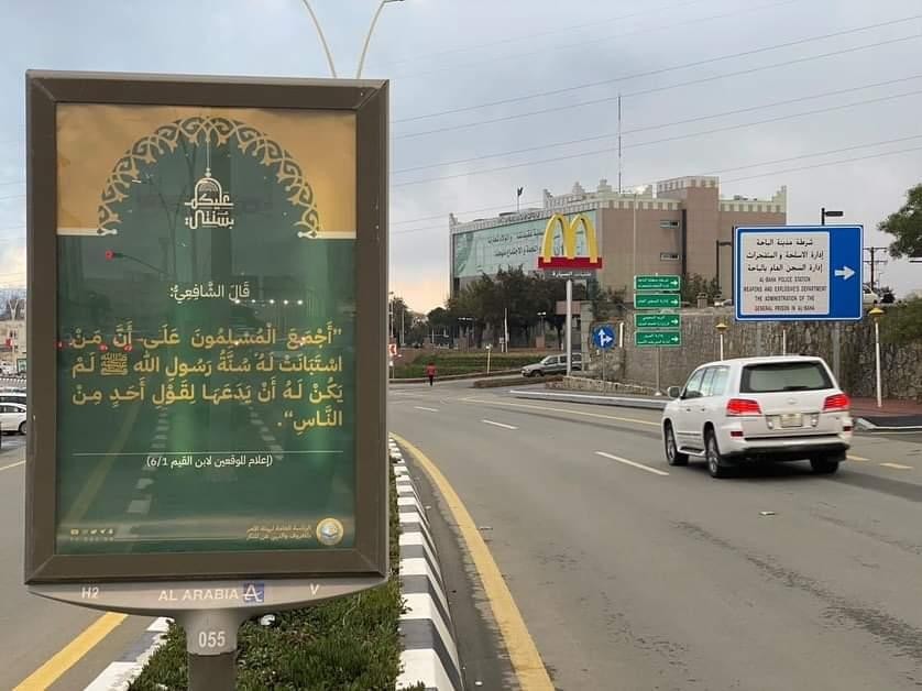 عرضت هيئة الأمر بالمعروف والنهي عن المنكر بمدينة الباحة محتويات حملة (عليكم بسنّتي) التوعوية، وذلك عبر اللوحات في الطرق الرئيسة بالمدينة، بالتعاون مع أمانة المنطقة.