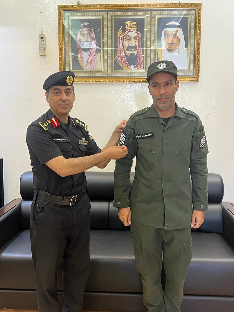 من جانبة قدم الرقيب أول / عوض موسى البارقي شكره على هذه الثقة سائلاً الله تعالى أن يعينه على أداء المهمة بما يرضي الله سبحانه وتعالى .
