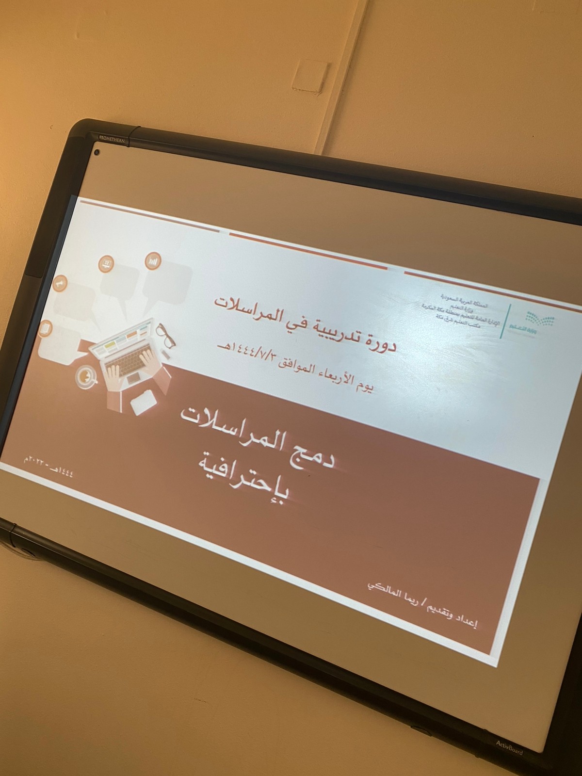 نفذت الإدارة العامة للتعليم بمنطقة مكة المكرمة ممثلة في مكتب تعليم شرق مكة برنامج "دمج المراسلات باحترافية"، يوم الاربعاء الموافق ١٤٤٤/٧/٣هـ ، نفذته منسقة التدريب بمكتب التعليم شرق مكة بقاعة ١٠٤ في المركز الخامس وذلك تحت إشراف مديرة المكتب أمل باجابر .