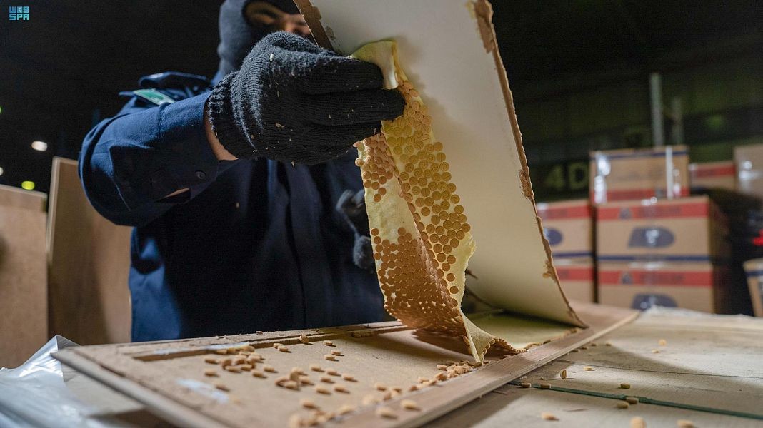 وأوضحت الهيئة أنه وردت إرسالية للمملكة عبر منفذ ميناء الملك عبدالعزيز، عبارة عن “ألواح خشبية”، وعند خضوعها للإجراءات الجمركية، والكشف عليها عبر التقنيات الأمنية، عُثر على تلك الكمية من الحبوب ضمن الإرسالية، بحيث جرى إخفاؤها داخل تجويف الألواح الخشبية.