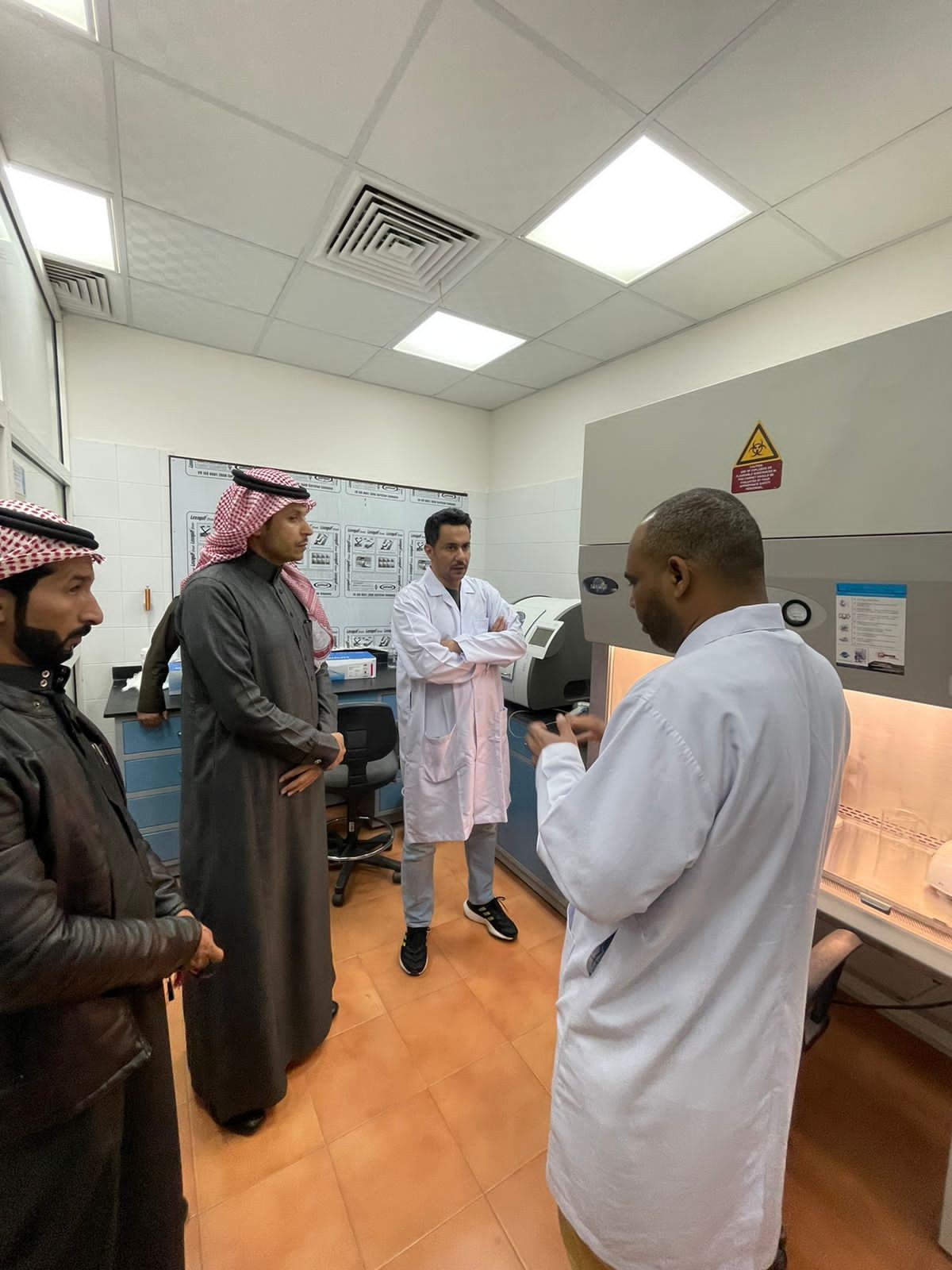 وكان في استقباله مدير المحجر محمود الشراري ، واطّلع على سير العمل بالمحجر وطرق الكشف على الإرساليات الحيوانية والنباتية الواردة عبر منفذ الحديثة للتأكد من سلامتها ومأمونيتها والحد من دخول الأمراض الوبائية والعابرة للحدود، إضافة إلى تشخيص الأمراض الحيوانية والأمراض المشتركة بين الإنسان والحيوان، كما اطلع على جاهزية تحقيق أعلى مستويات الخدمة لمستفيدي المنفذ واوضح إن محجر الوزارة يضع السلامة الغذائية ضمن أولوياته في العمل وذلك من خلال  إجراءات الجودة في جميع المرافق والعمليات التابعة لها،  وتطبيق جميع الإجراءات المحجرية الواردة في نظام (قانون) الحجر البيطري لدول مجلس التعاون في دول الخليج العربية ولائحته التنفيذية بالمملكة