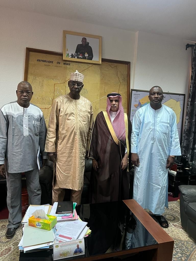 قام سعادة سفير خادم الحرمين الشريفين لدى جمهورية النيجر الدكتور/ زيد بن مخلد الحربي الثلاثاء 1444/7/16الموافق 2023/2/2بزيارة لمعالي وزير التعليم العالي والبحث العلمي البروفيسور/ مامودو جيبو، وجرى خلال اللقاء استعراض سبل ومجالات التعاون المشترك بين البلدين الشقيقين.