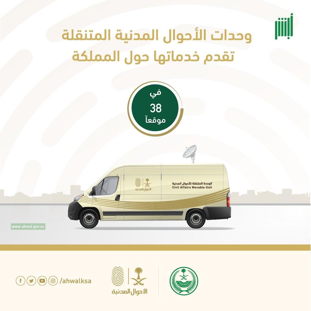 تقدم الوحدات المتنقلة للأحوال المدنية خدماتها للرجال والنساء في عدة مناطق حول المملكة، ومنها منطقة عسير وذلك ضمن مبادرة " نأتي إليك" التي تنفذها وكالة وزارة الداخلية للأحوال المدنية للجهات الحكومية والخاصة، ومبادرة "موجودين" الموجهة لخدمة المحافظات والمراكز والقرى البعيدة عن مكاتب الأحوال المدنية.