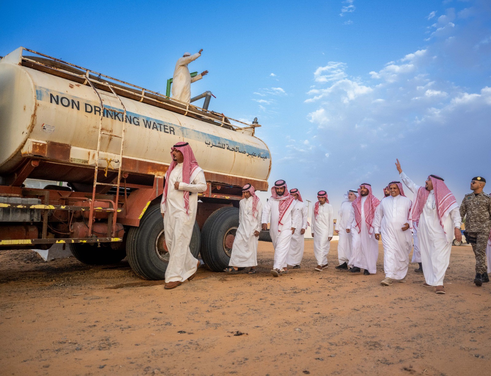 واطلع سموه خلال الزيارة على سير العمل في مورد السقيا، مستمعًا إلى شرح موجز من المشرف على المشروع سالم الوهبي، الذي بيّن أن المشروع يسهم في توفير موارد السقيا للرعاة والبادية، بإشراف من مؤسسة مجتمعي، بالإضافة إلى وجود عدد من الخدمات المتكاملة في مورد المياه، التي تتمثل في المسجد، وخزانات المياه، ودورات المياه، وأحواض لسقي الماشية والإبل.