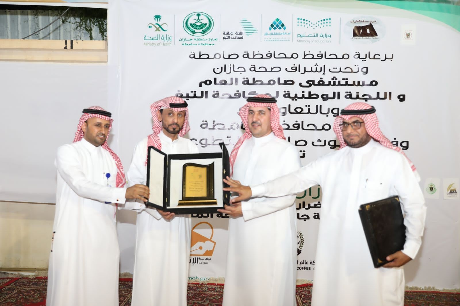 دشن سعادة محافظ صامطة الدكتور حزام بن قبلان ، فعاليات البرنامج التوعي "جازان بلا تبغ" المتزامن مع الحملة الوطنية لمكافحة المخدرات وضمن حملة صحة جازان لمكافحة المخدرات والذي نظمه مستشفى صامطة العام واللجنة الوطنية لمكافحة التبغ بصحة جازان وبالتعاون مع بلدية صامطة وفريق غيوث صامطة التطوعي ومشاركة عدد من الجهات الحكومية والخاصة ، بحضور مساعد مدير مستشفى صامطة العام الأستاذ عبدالعزيز الخثلان ومدير اللجنة الوطنية لمكافحة التبغ بصحة جازان الدكتور محمد الشريف ورؤساء الدوائر الحكومية والمشايخ والاعيان واعضاء المجلس المحلي ، وذلك بحديقة الشهداء بالمحافظة.