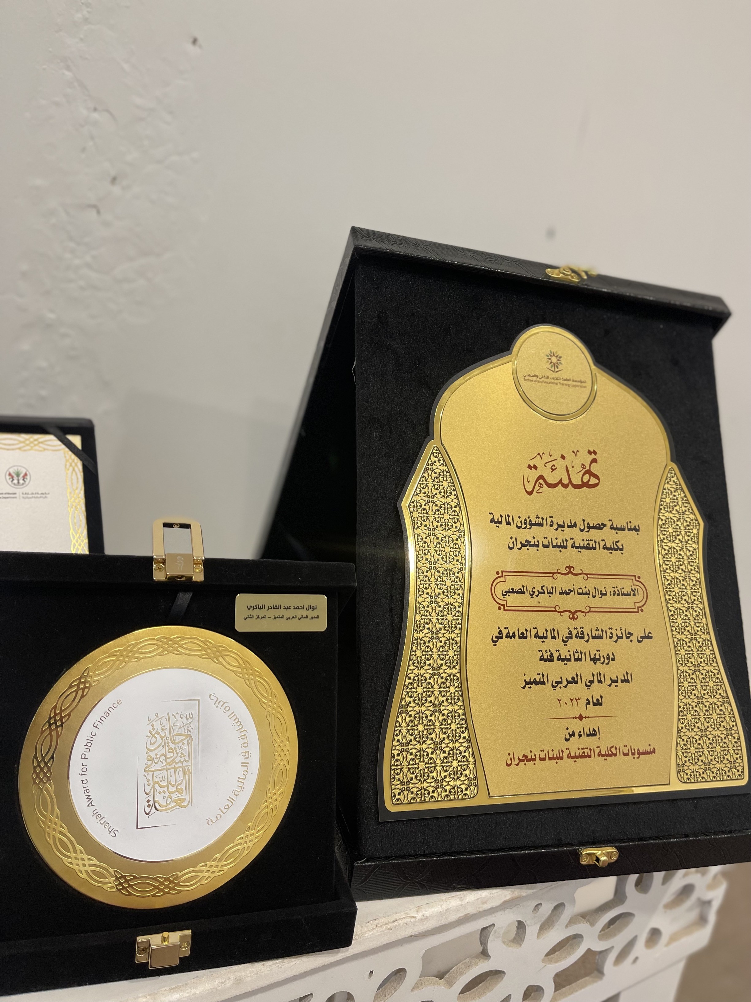 *الكلية التقنية للبنات بنجران تحتفي بالاستاذة نوال الباكري لحصولها المركز الثاني للمالية بالشارقة *