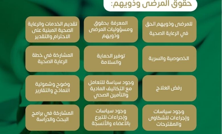 وتؤكد وثيقة حقوق المرضى أن المريض أو ذويه مسؤول مسؤولية تامة عن صحة المعلومات المقدمة، كما يجب عليه إعطاء الموظف المعلومات اللازمة، والتواصل مع الجهة المعنية للتبليغ عن وجود مشكلة .
